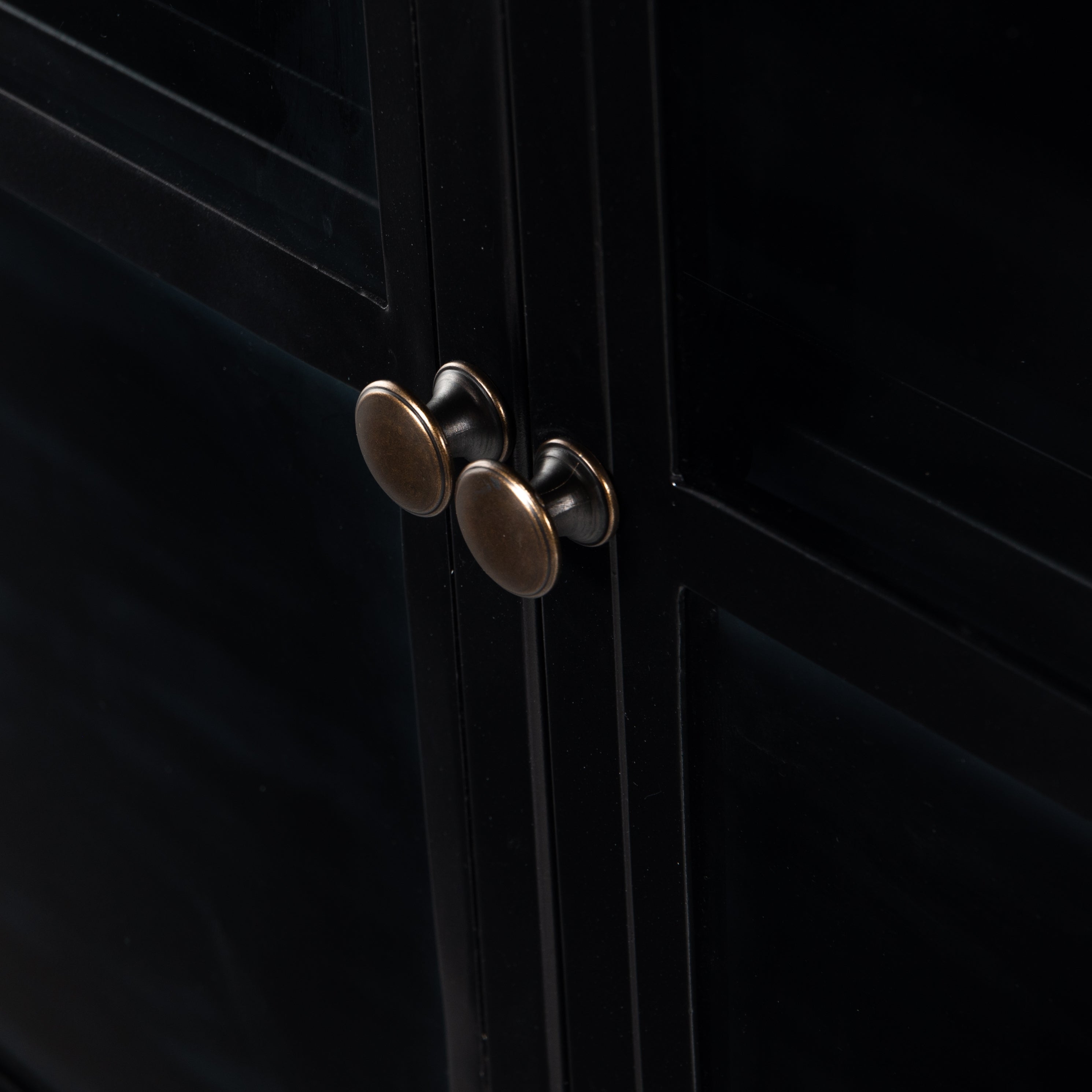 Featuring Shadow Box Sideboard - Black by Four Hands at Amethyst Home. This Shadow Box Sideboard gives your inner collector a place to play. Store prized possessions behind clear glass fronts, with black-finished metal casing and brass hardware for contrast.