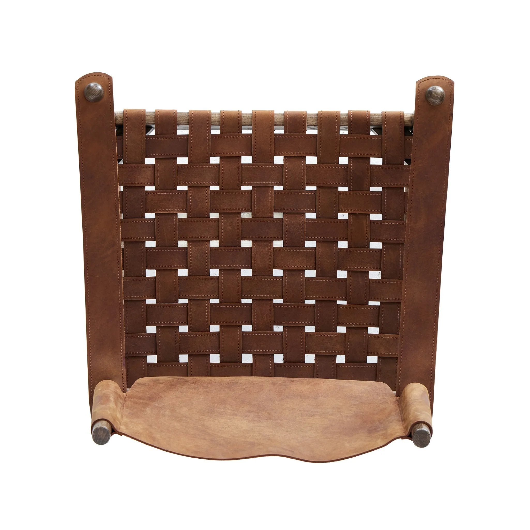 Reviving a vintage-inspired frame, this leather sling chair meets retro character with laid-back comfort. The tan leather sling back, shaped like a shield, adds bold style, while the woven seat provides a supportive, unique seating experience. Crafted from an ash wood frame with dowel construction, the chair?s arms create a subtle peekaboo effect with the leather. The thick saddle leather, expertly tanned, brings warmth and a found, aged look.
