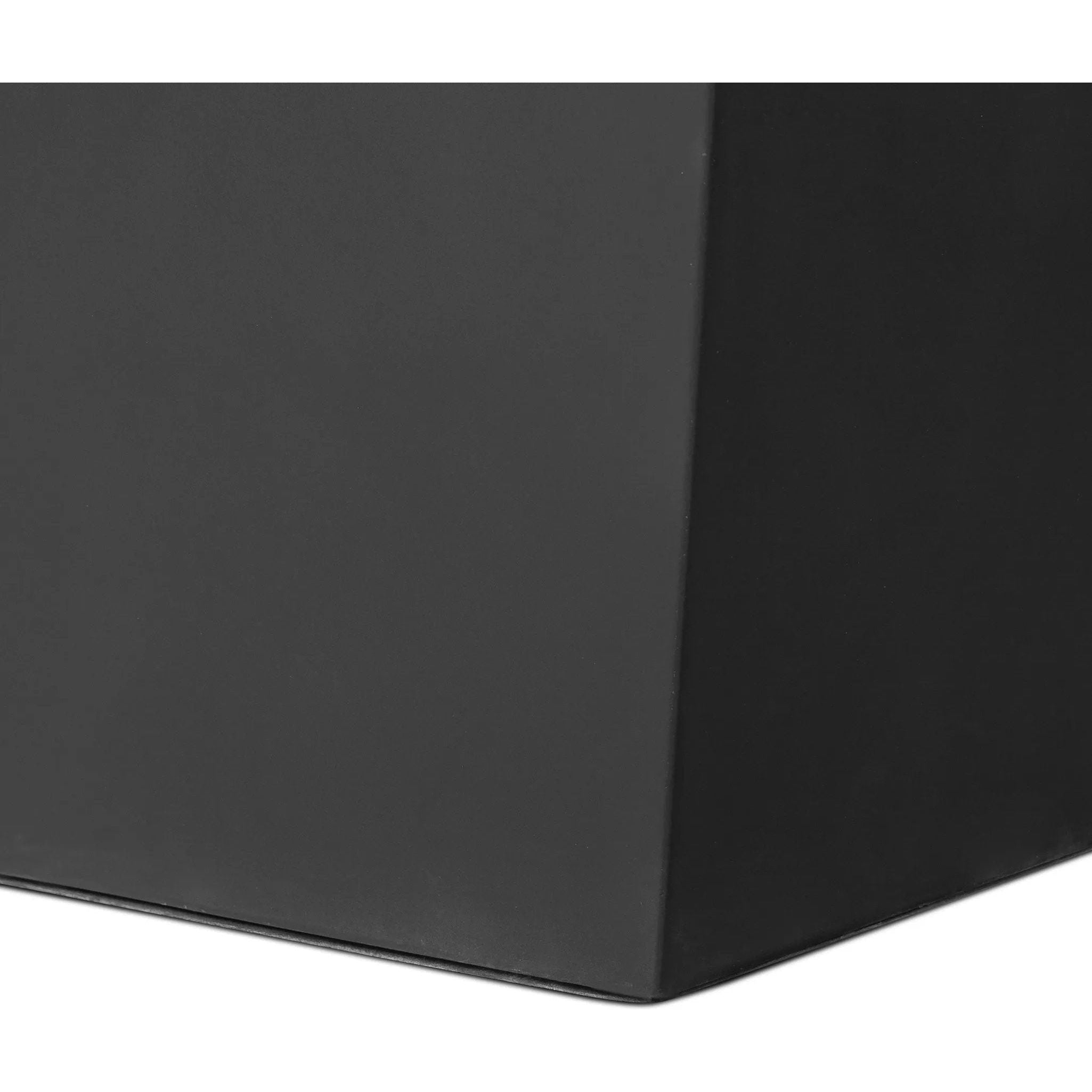 Cast black concrete forms a monolithic planter for use indoors and out. Cover or store indoors during inclement weather and when not in use.