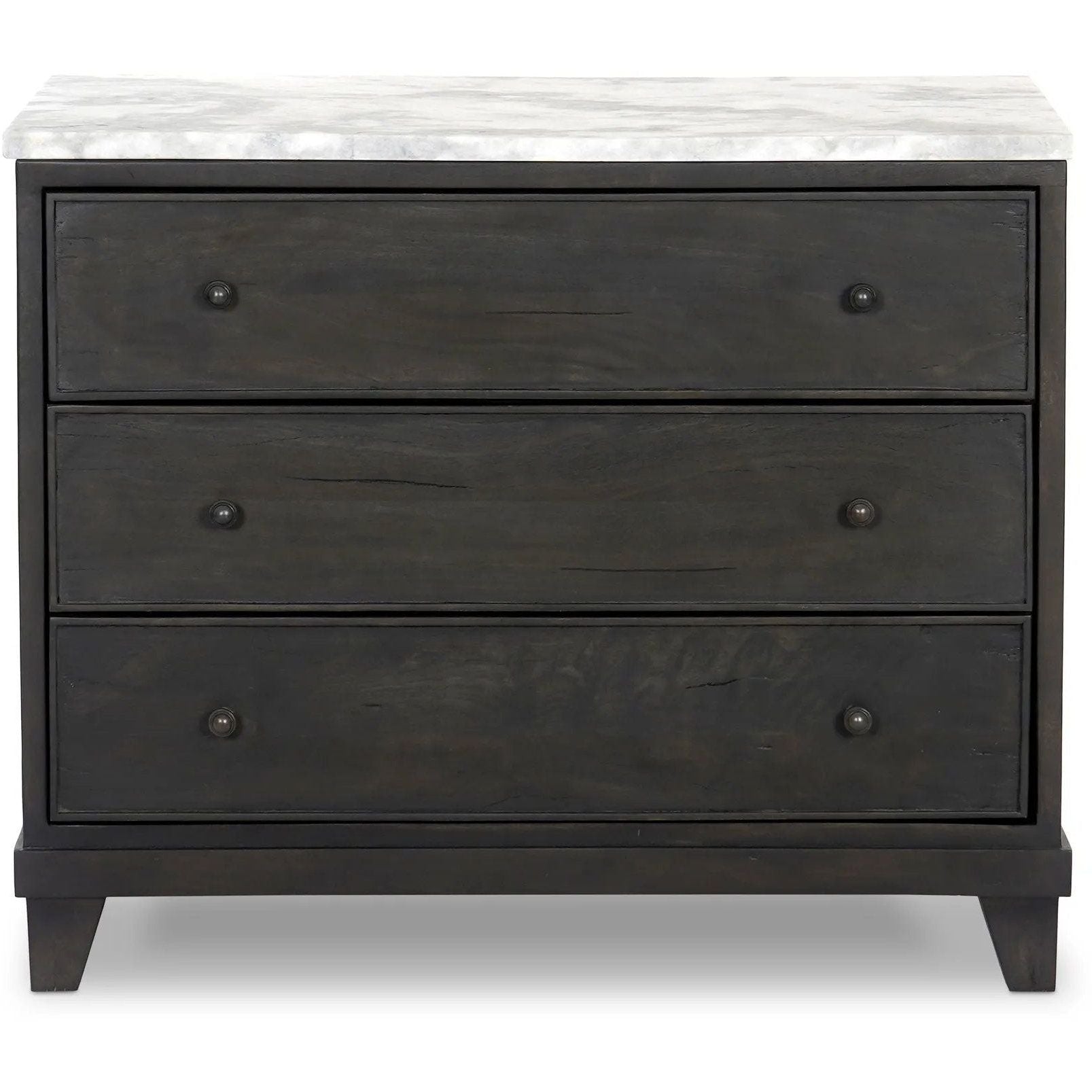 Featuring Odette White Statuario Marble Nightstand by Four Hands at Amethyst Home. Experience luxury and elegance with our Odette White Statuario Marble Nightstand. Made from premium marble, this stunning piece adds a touch of sophistication to any bedroom. Organize your essentials with the included nightstand, while also elevating your space with its intri. Amethyst Home provides interior design, new home construction design consulting, vintage area rugs, and lighting in the Nashville metro area.