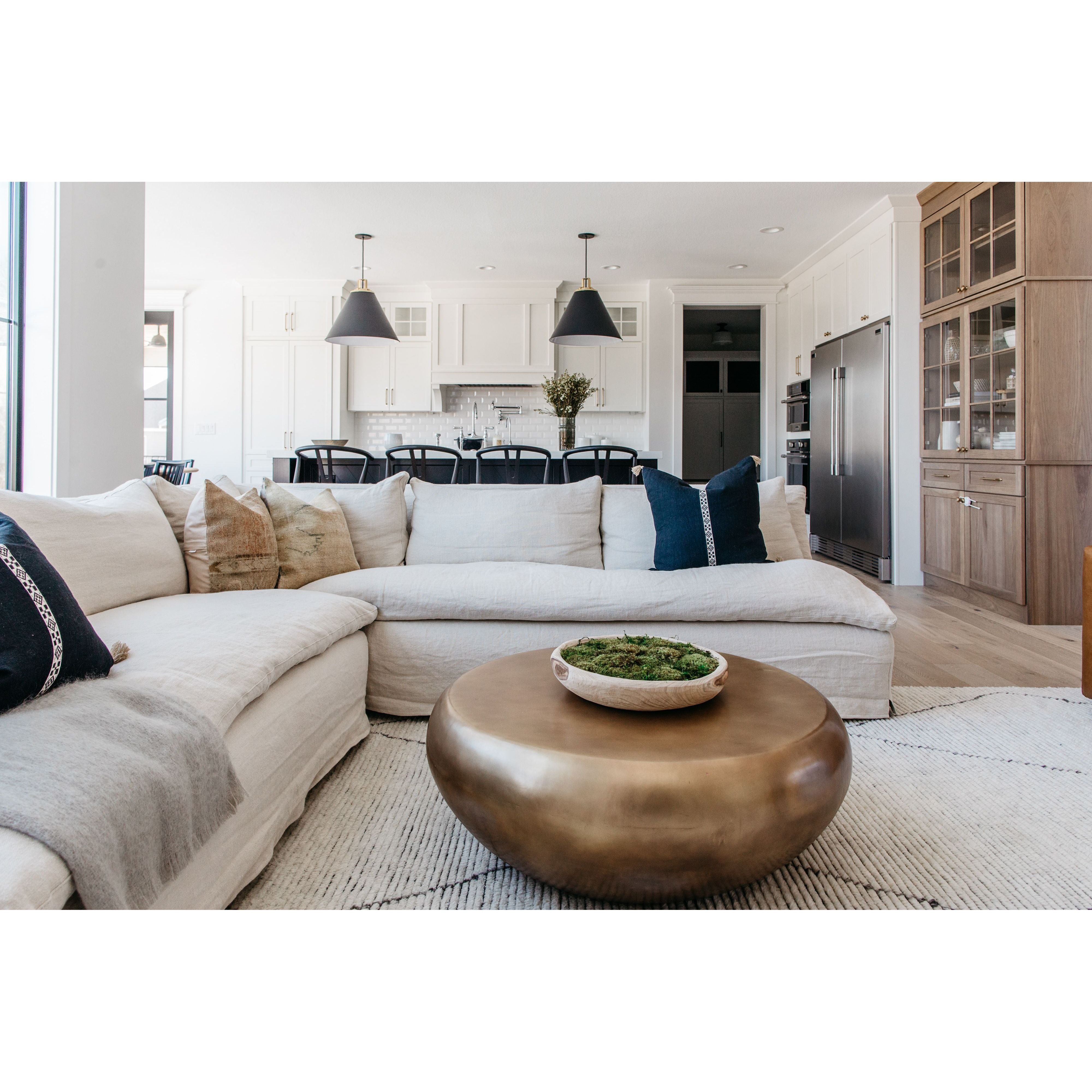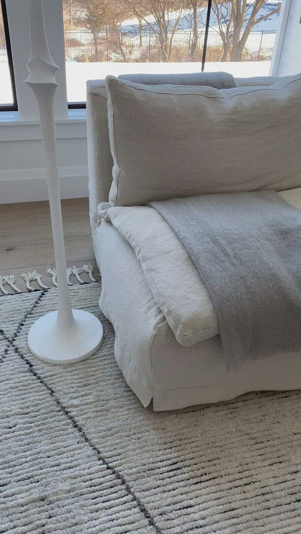 A casual, slipcovered chunky linen sectional by Cisco Brothers, the Laguna 2pc Sectional is the ultimate in casual luxury. A down-filled seat cushion is supported by springs in a gentle, resting position. Pair with a one-of-a-kind statement rug for a signature look. Shown in Otis White 100% linen.