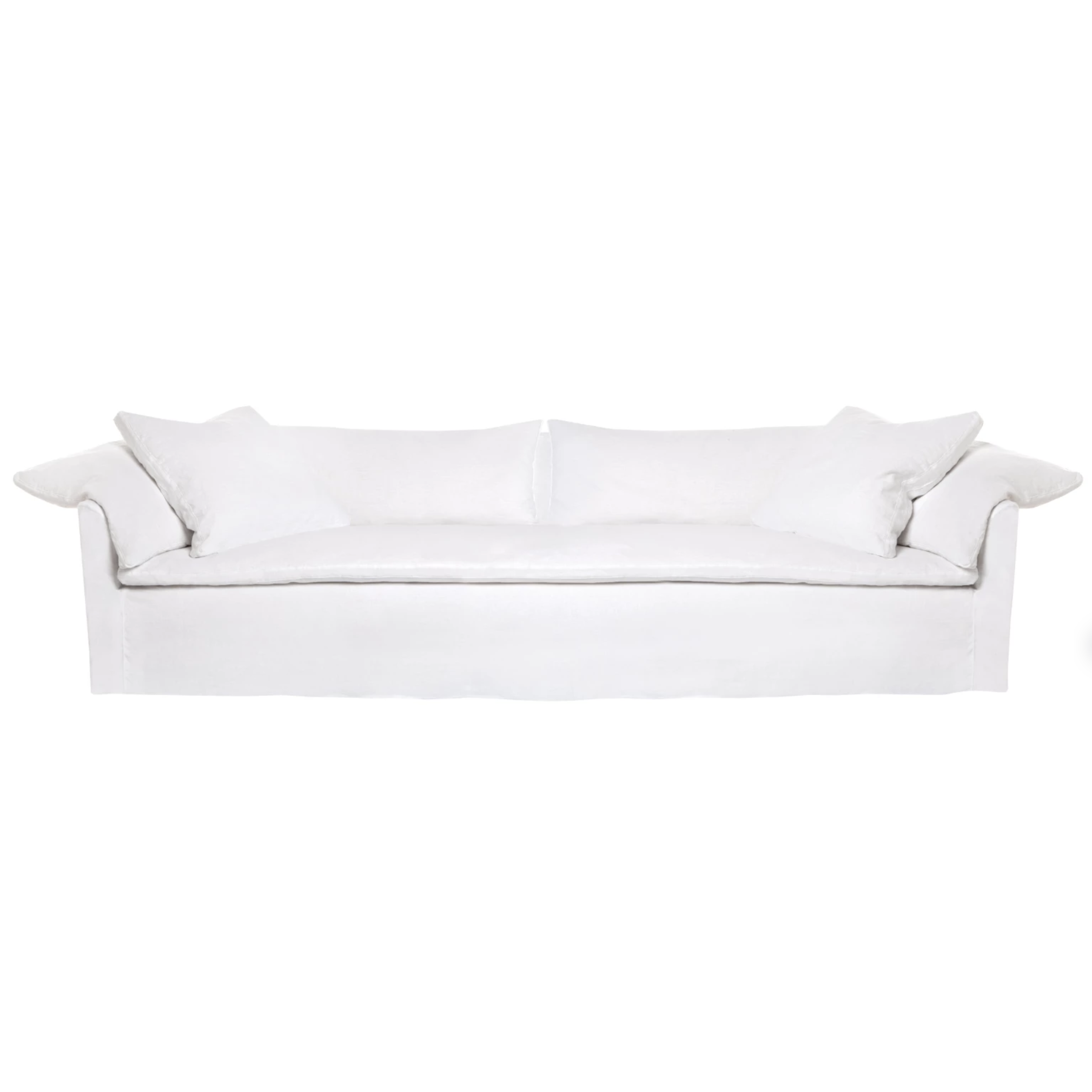 This cozy Donato Sofa from Cisco Brothers is our favorite! As shown slipcovered in Mariet White 100% linen fabric.