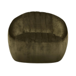 Velvety olive fabric and dramatic channeling make update traditional barrel seating while a hidden 360-degree swivel adds a modern finishing touch. Fabric features subtle highs and lows that change in appearance depending on the direction of the fabric's nap.
