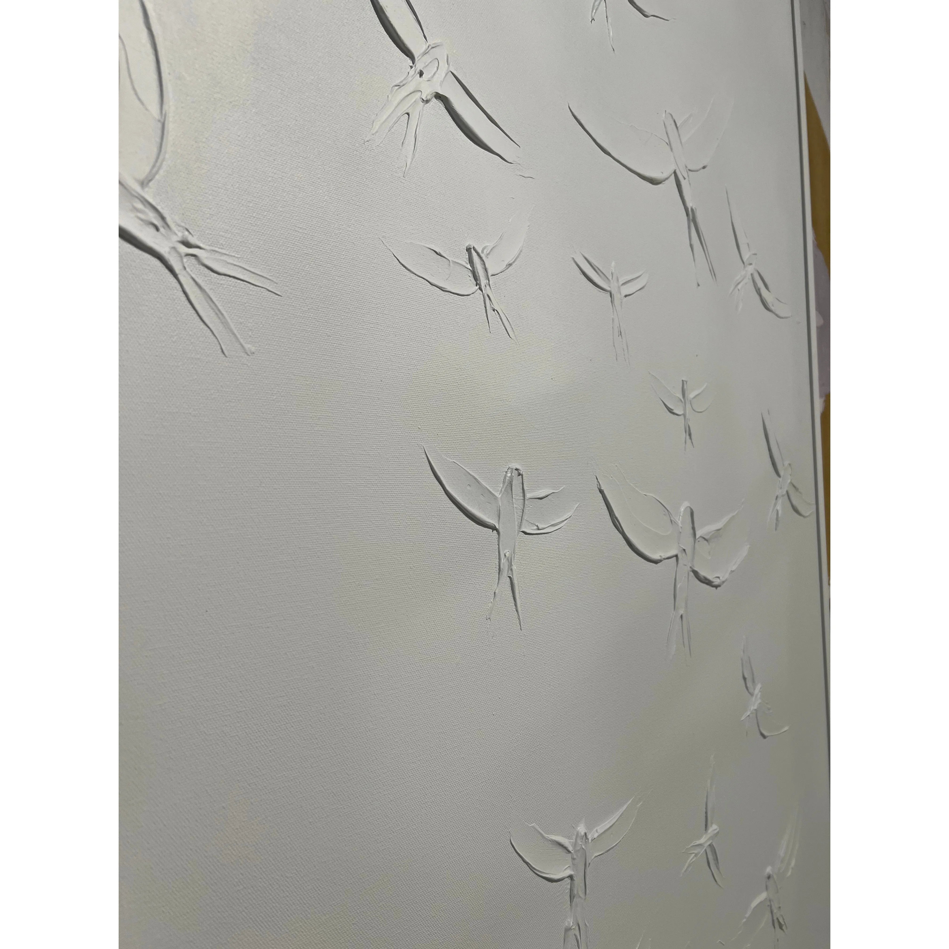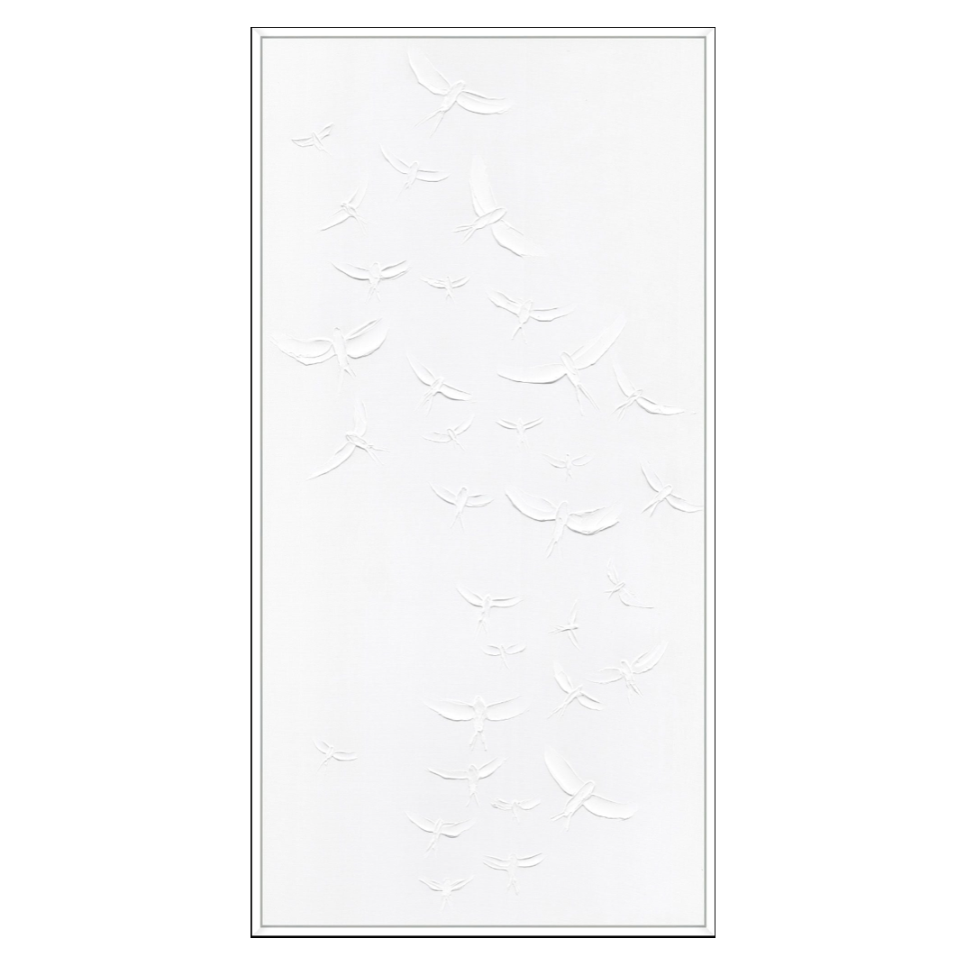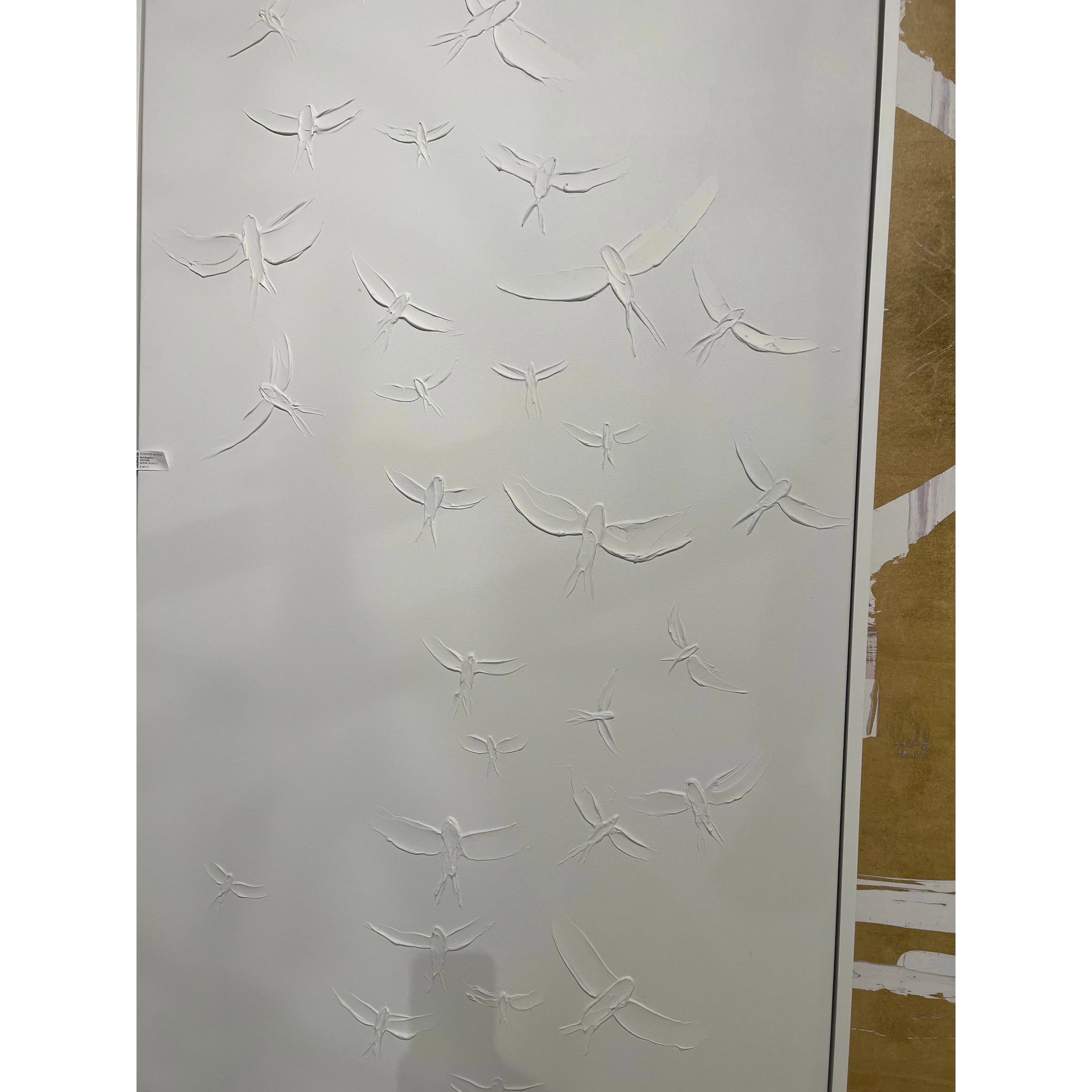 The hand applied textured birds are represented in this reproduction art in their seasonal migration journey.