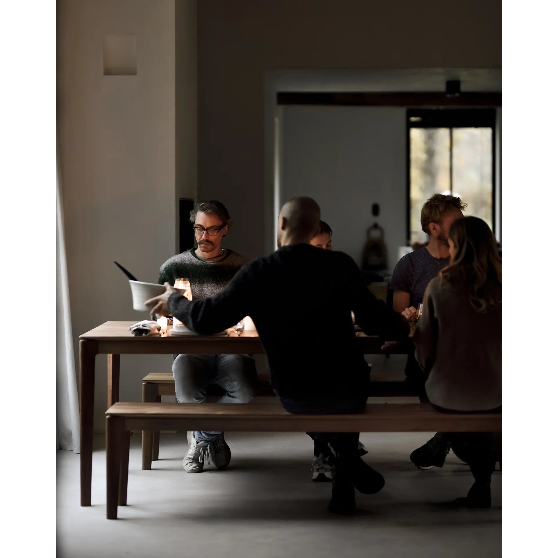 Reminiscent of a goat's curved horns, the Bok collection combines sculptural elegance and contemporary crafting into a graceful and airy form. The Bok bench will pair perfectly with the Bok dining table. But also, as a stand-alone against a wall, in a hallway, or at the end of a bed.