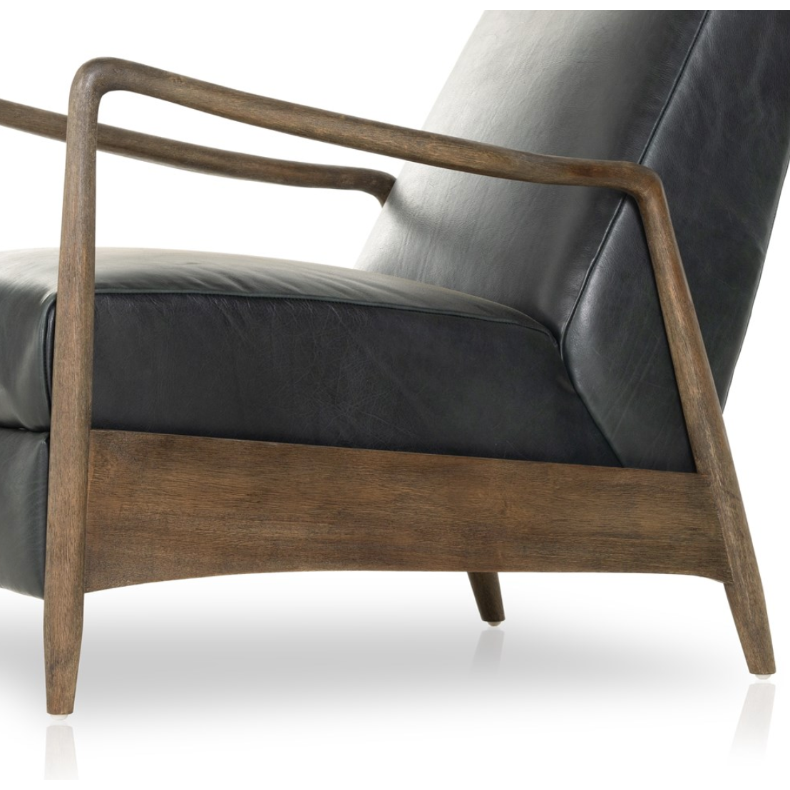 Featuring Braden Dakota Black Recliner by Four Hands at Amethyst Home. The craftsmanship of the sophisticated Braden Recliner seen here in Dakota Black is second to none. With its soft leather and silhouette, this recliner will look great in your main living space or office.