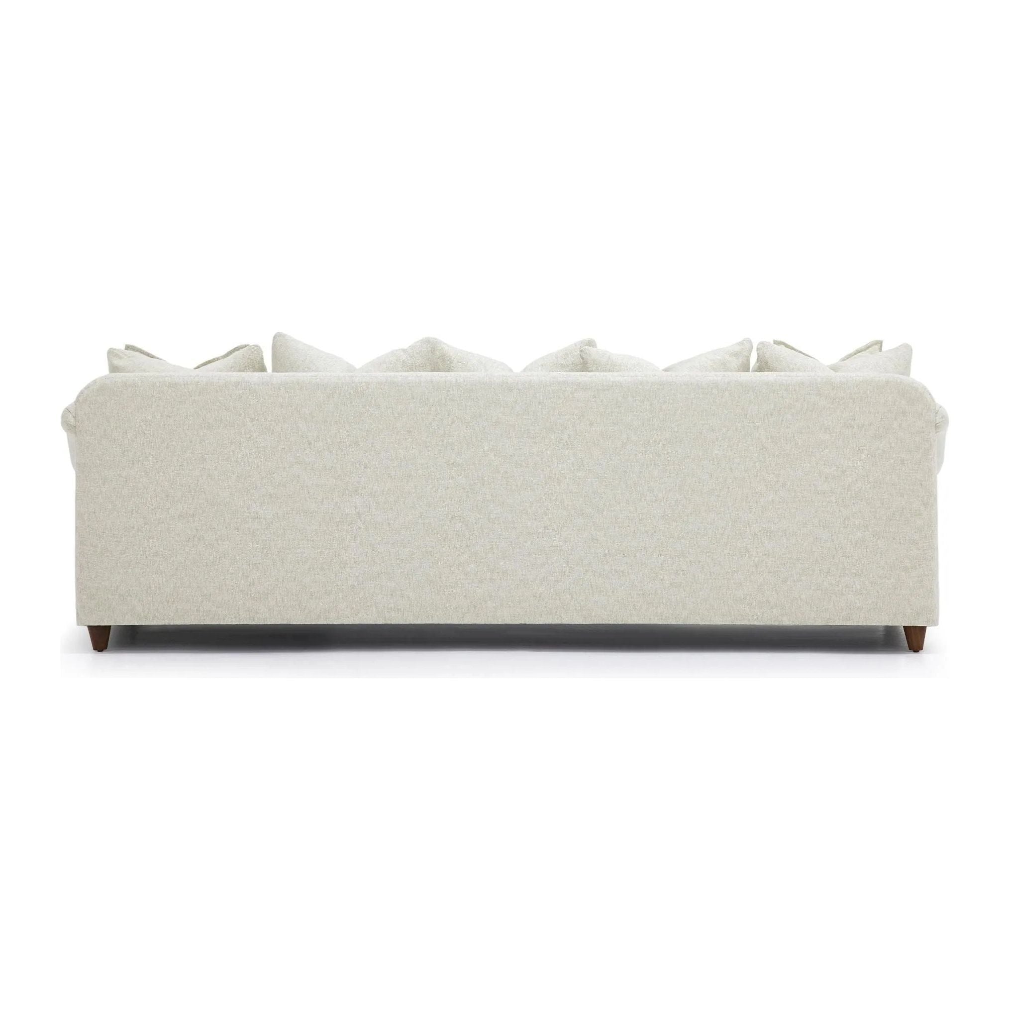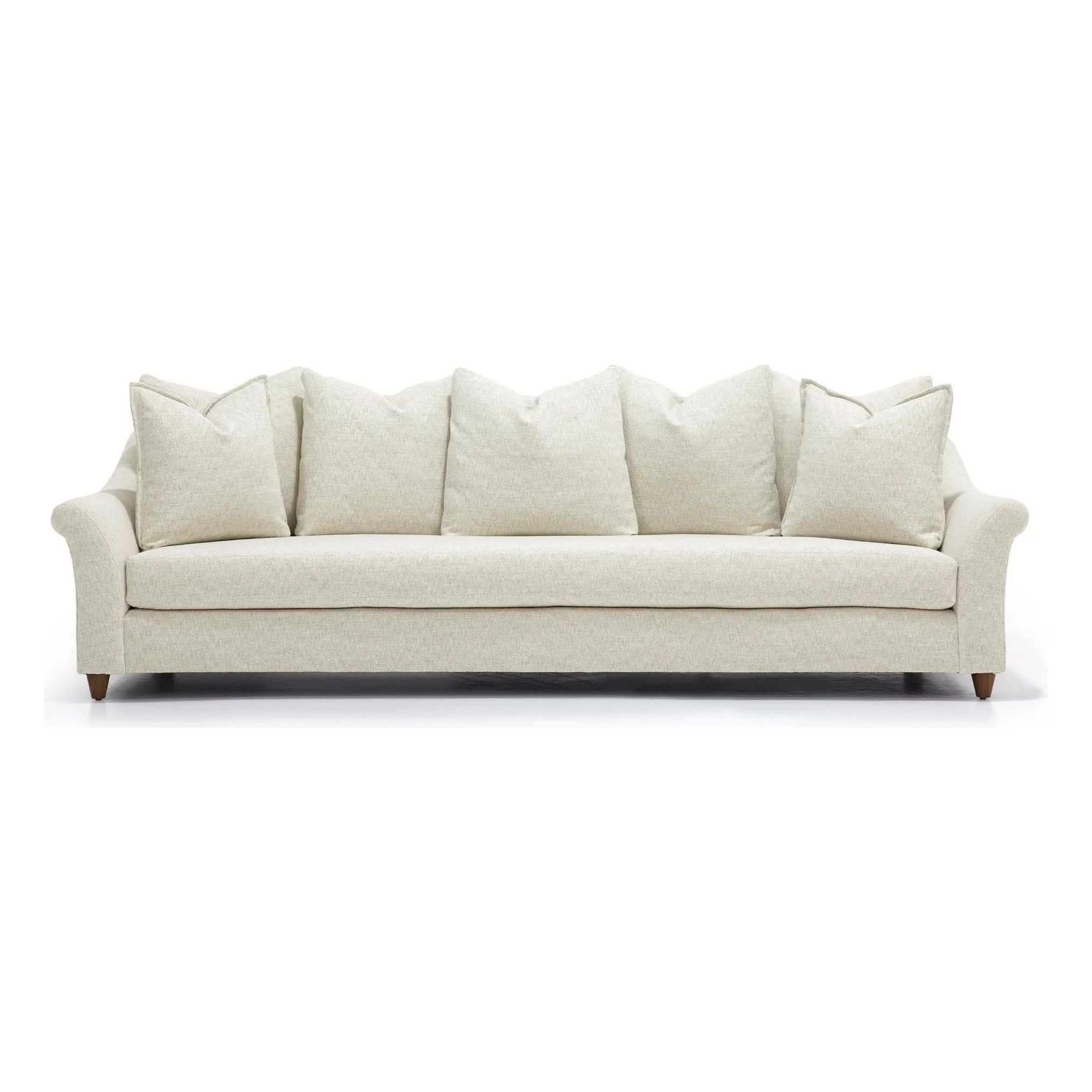 The Camille sofa line showcases a series of graceful curves for a sleek, sculptural look, complemented by modern wood legs for an added touch of elegance. Available upholstered or slipcovered. Amethyst Home provides interior design, new home construction design consulting, vintage area rugs, and lighting in the Charlotte metro area.