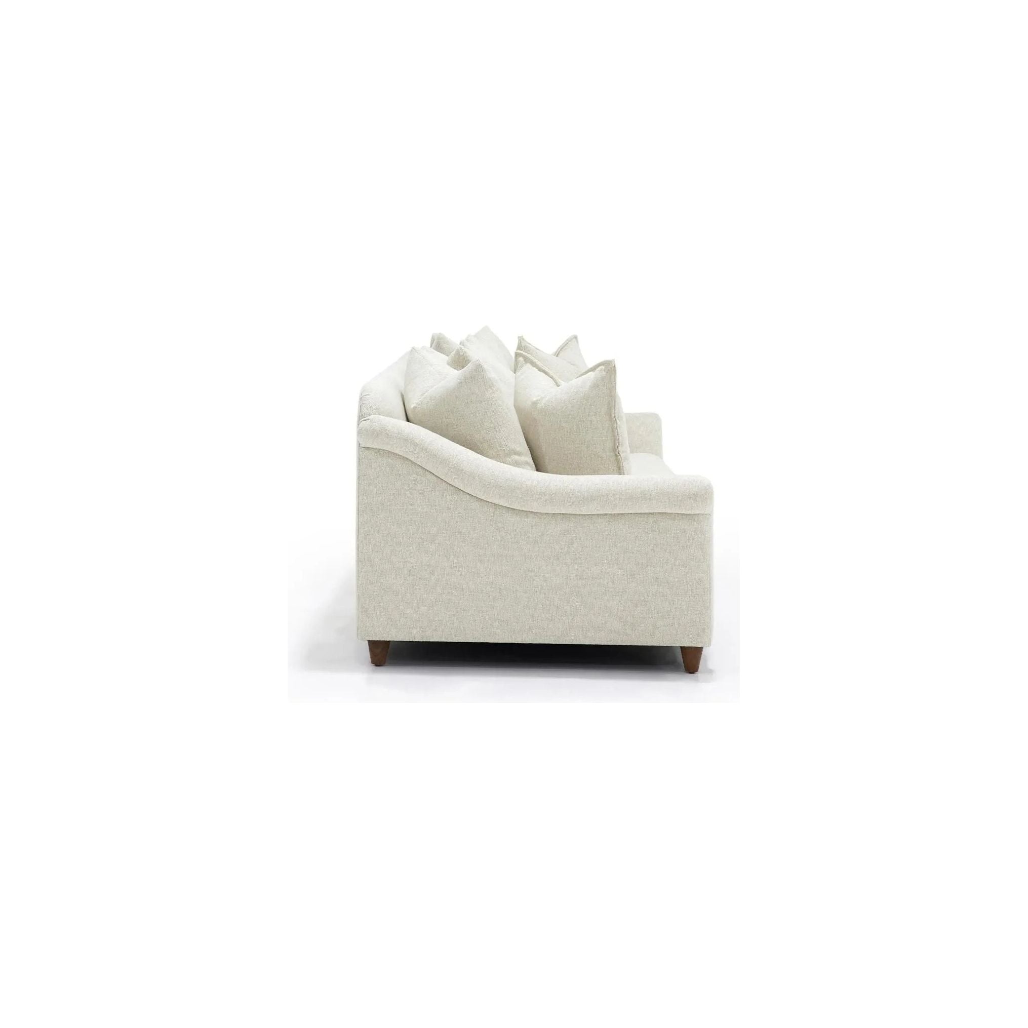 The Camille sofa line showcases a series of graceful curves for a sleek, sculptural look, complemented by modern wood legs for an added touch of elegance. Available upholstered or slipcovered.