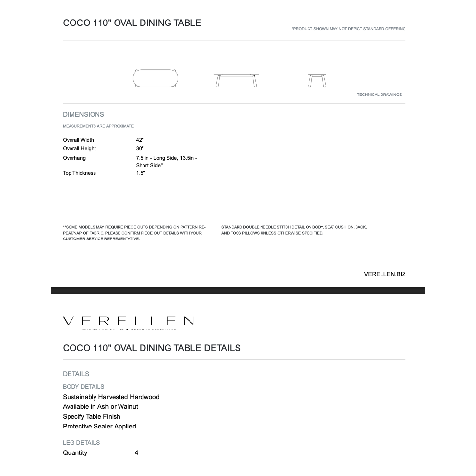 Coco 110" Oval Dining Table By Verellen