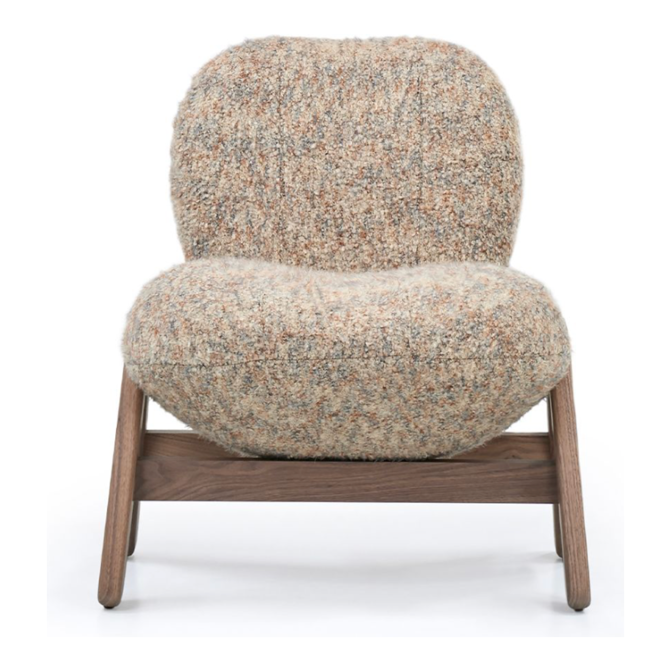 The Cosmo is unexpected and positively groovy.  Gorgeous walnut base with a speckled, unusual textile.  It sits like a dream!