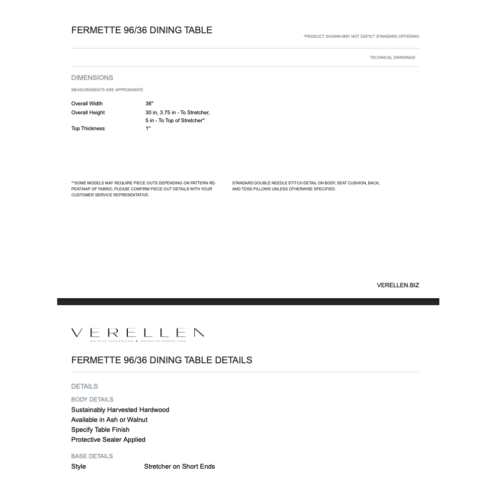 Fermette W/Stretchers 96/36 Dining Table By Verellen