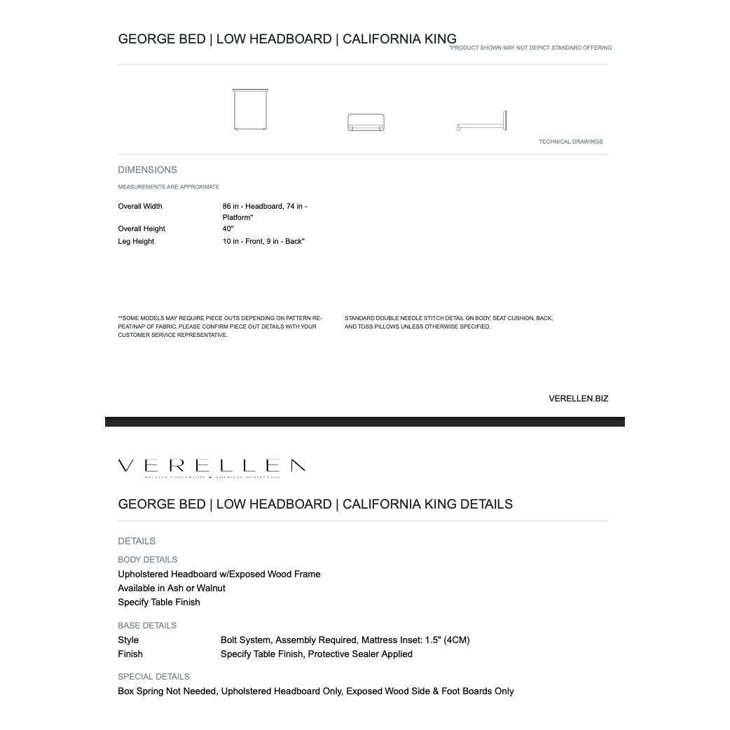 ꕤ About The George Walnut Low Headboard California King Bed By Verellen
