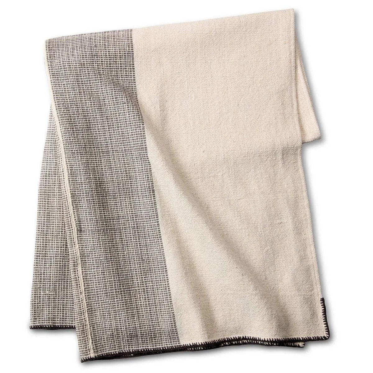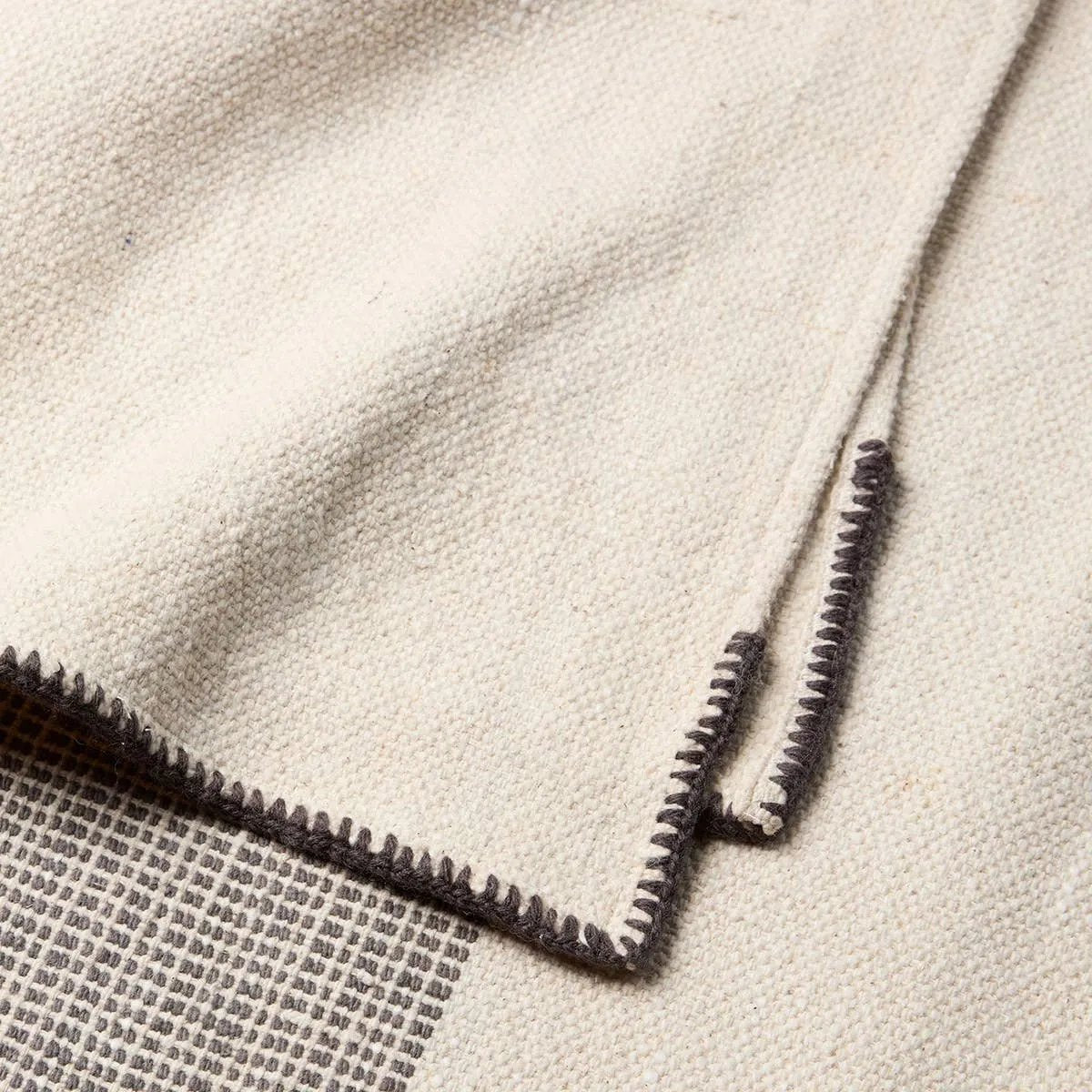The Neem & Jaipur Living present the Margosa Embata, offering stonewashed and embroidered handcrafted throws, blankets, and bedding expertly crafted of soft cotton and hand-spun wool in India. Grounded in ancient textile traditions, this Embata brings natural designs and textures through indigenous techniques, nature-inspired colors, and raw fibers. The Embata throw offers a duo-tone design in natural cream and gray hues. Handwoven in India of 100% cotton this accent piece provides a global style to any contemporary home.
