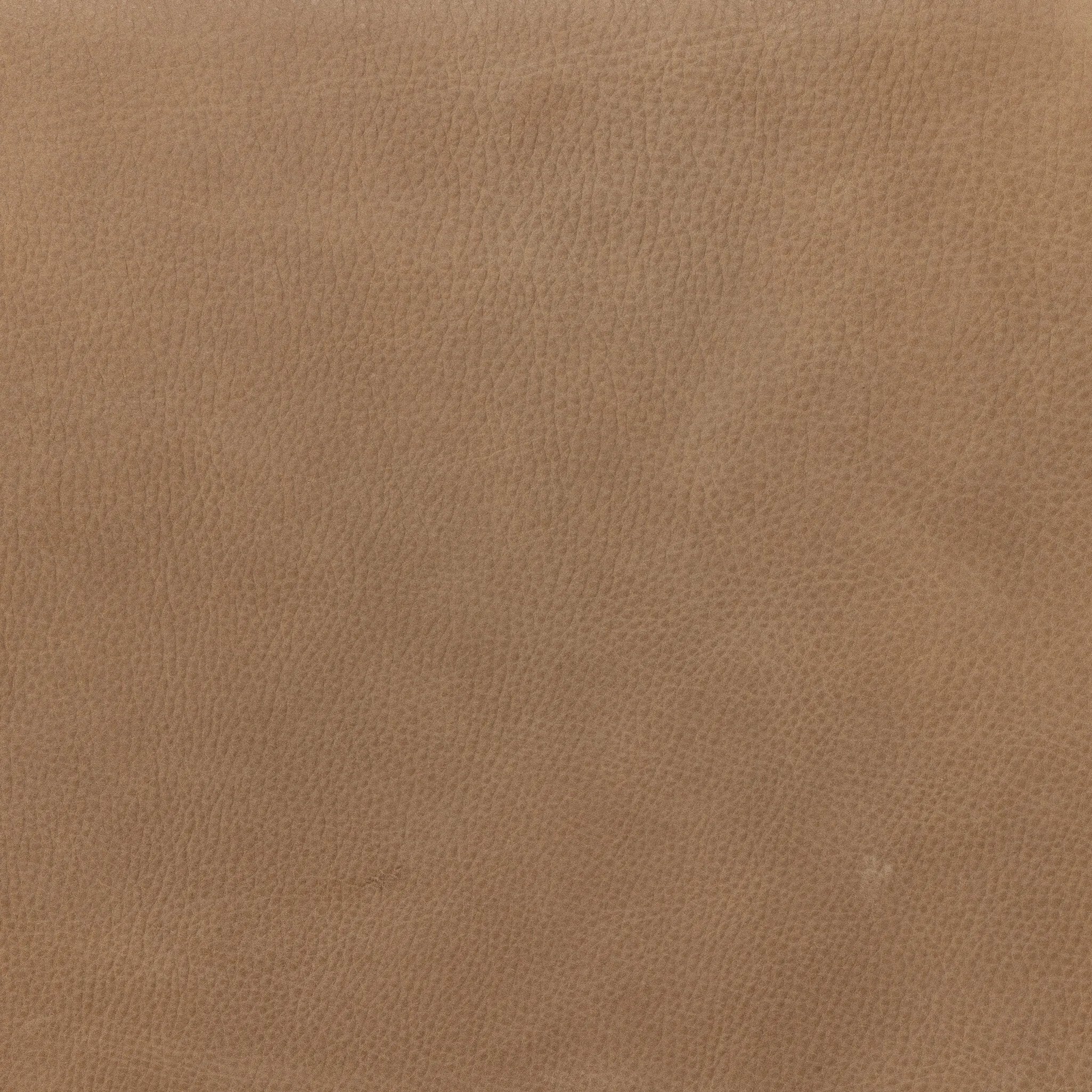 Safari inspiration meets zen aspirations. A cylindrical frame is crafted, smoothed and rounded from solid ash wood. Includes two loose feather-blend cushions covered in subtly distressed thick cut leather in a neutral taupe hue for a monochromatic look.