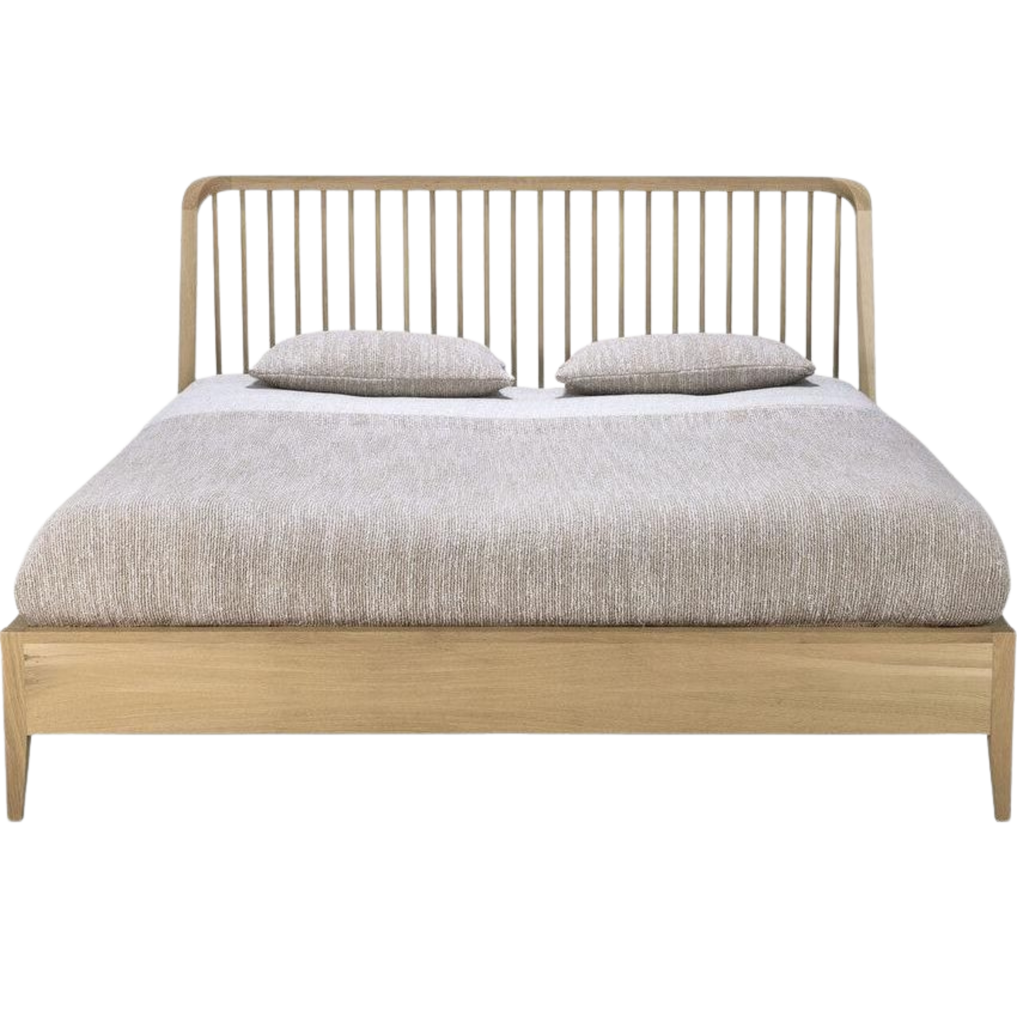 Featuring Oak Spindle Bed by Ethnicraft at Amethyst Home. The Oak Spindle Bed found its inspiration in the traditional spinning wheel and incorporates perfectly aligned spokes into the headboard. Slightly tapered legs and rounded edges add a soft, sensual quality to this beautiful bedroom collection.