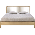 The Oak Spindle Bed found its inspiration in the traditional spinning wheel and incorporates perfectly aligned spokes into the headboard. Slightly tapered legs and rounded edges add a soft, sensual quality to this beautiful bedroom collection.