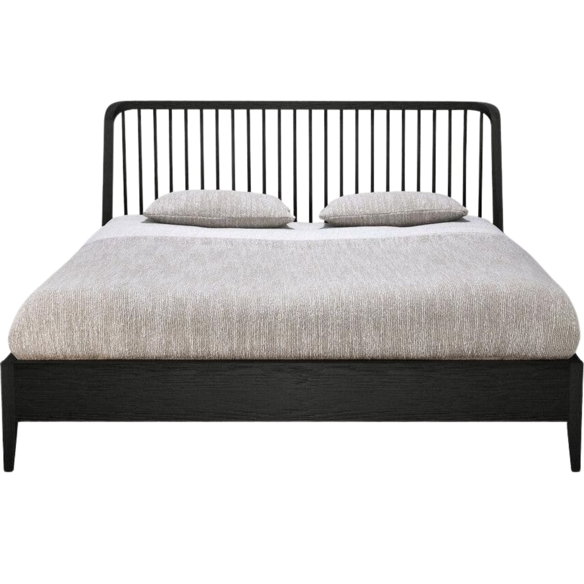 Featuring Spindle Oak Black Bed by Ethnicraft at Amethyst Home. The Spindle collection found its inspiration in the traditional spinning wheel and incorporates perfectly aligned spokes into the headboard. Slightly tapered legs and rounded edges add a soft, sensual quality to this beautiful bedroom collection.Overall Dimensions: 84" W x 80" L x 38.5" H Weight : 170 lbs84" W x 64.5. Amethyst Home provides interior design, new construction, custom furniture, and area rugs in the Alpharetta metro area