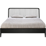 Featuring Spindle Oak Black Bed by Ethnicraft at Amethyst Home. The Spindle collection found its inspiration in the traditional spinning wheel and incorporates perfectly aligned spokes into the headboard. Slightly tapered legs and rounded edges add a soft, sensual quality to this beautiful bedroom collection.Overall Dimensions: 84" W x 80" L x 38.5" H Weight : 170 lbs84" W x . Amethyst Home provides interior design, new construction, custom furniture, and area rugs in the Salt Lake City metro area
