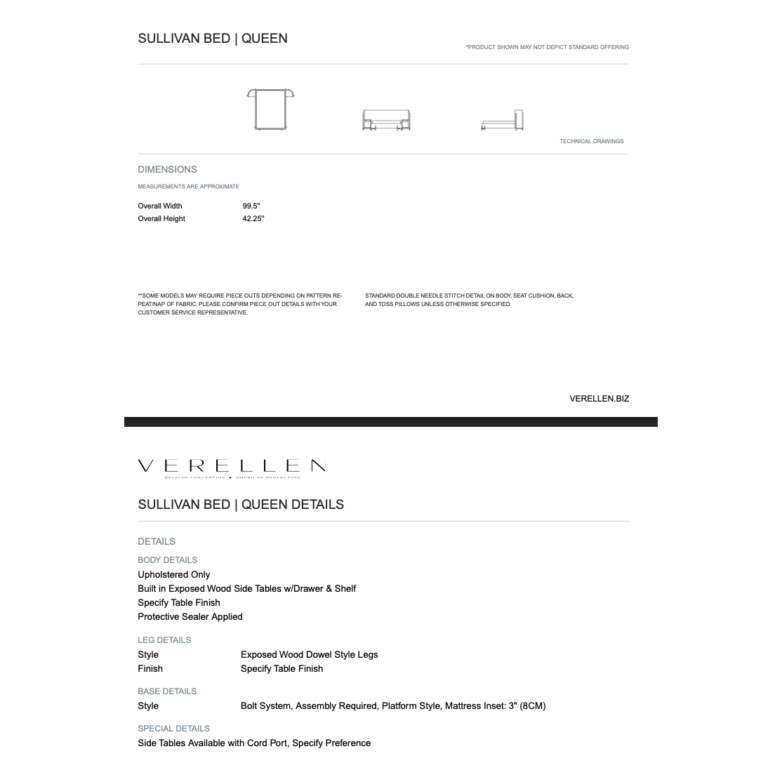 About The Sullivan Ash Queen Bed By Verellen & Dimensions