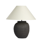 Featuring Muji Ivory Linen Table Lamp by Four Hands at Amethyst Home. The Muji Table Lamp is designed with a premium finish, featuring a beautiful Ivory Linen color. This stylish and modern lamp will add a touch of class and sophistication to any room. With its eye-catching aesthetic, it will be sure to draw attention.Overall Dimensions: 22"W x 22"L x 24"H