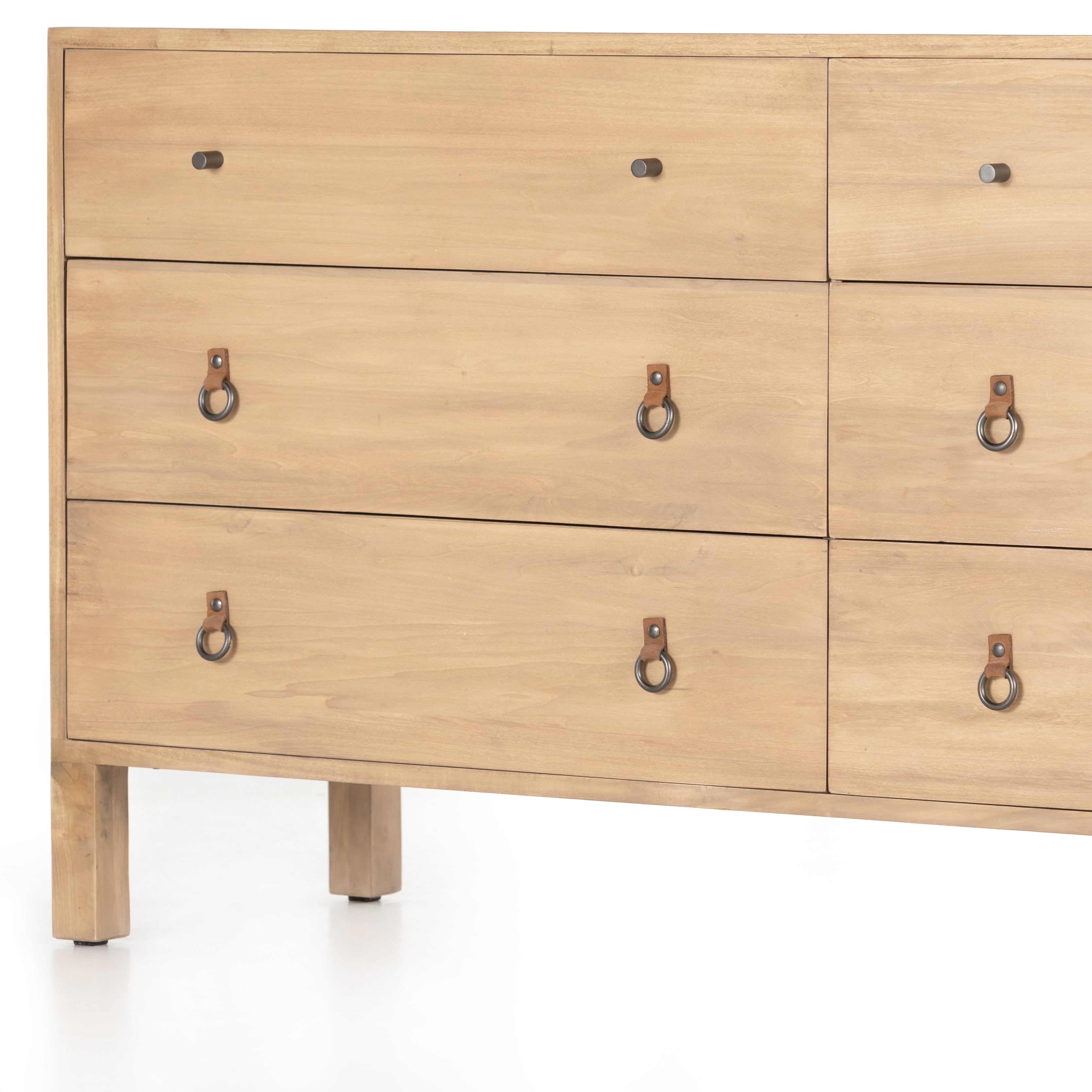 Featuring Rosedale 6 Drawer Dresser by Four Hands at Amethyst Home. The light-finished oak of this Rosedale 6 Drawer Dresser brings a clean, brightness to any room. With six spacious drawers and iron hardware wrapped in a gorgeous, tan leather, this is a functional and beautiful piece to add to your bedroom or other area.