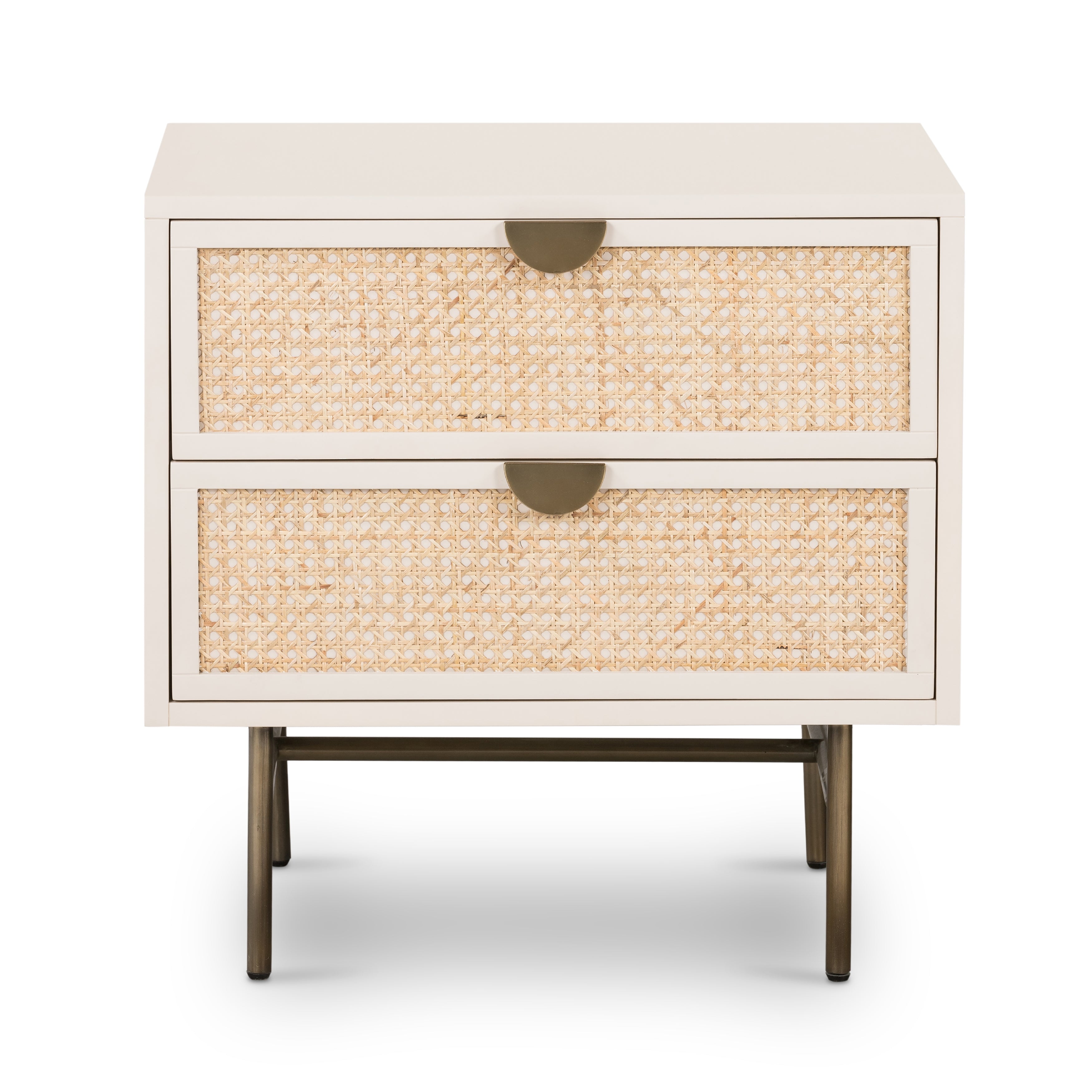 Featuring Rosedale Nightstand by Four Hands at Amethyst Home. The light-finished oak of this Rosedale Nightstand brings a clean, brightness to any room. We love how the two spacious drawers have iron hardware wrapped in a gorgeous, tan leather. The dimension legs with iron connecting them bring a unique look to your bedroom or other area!