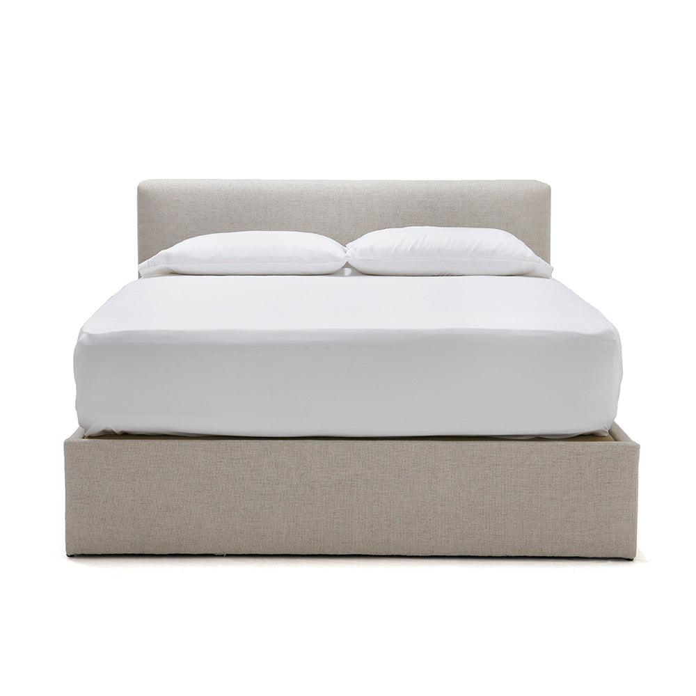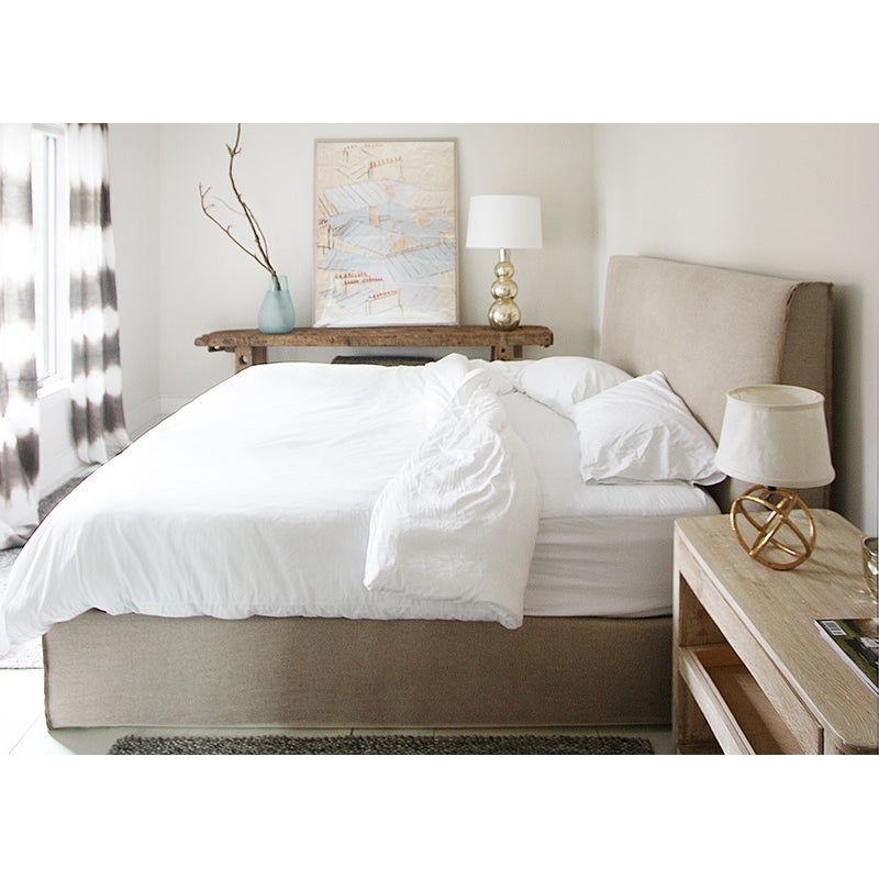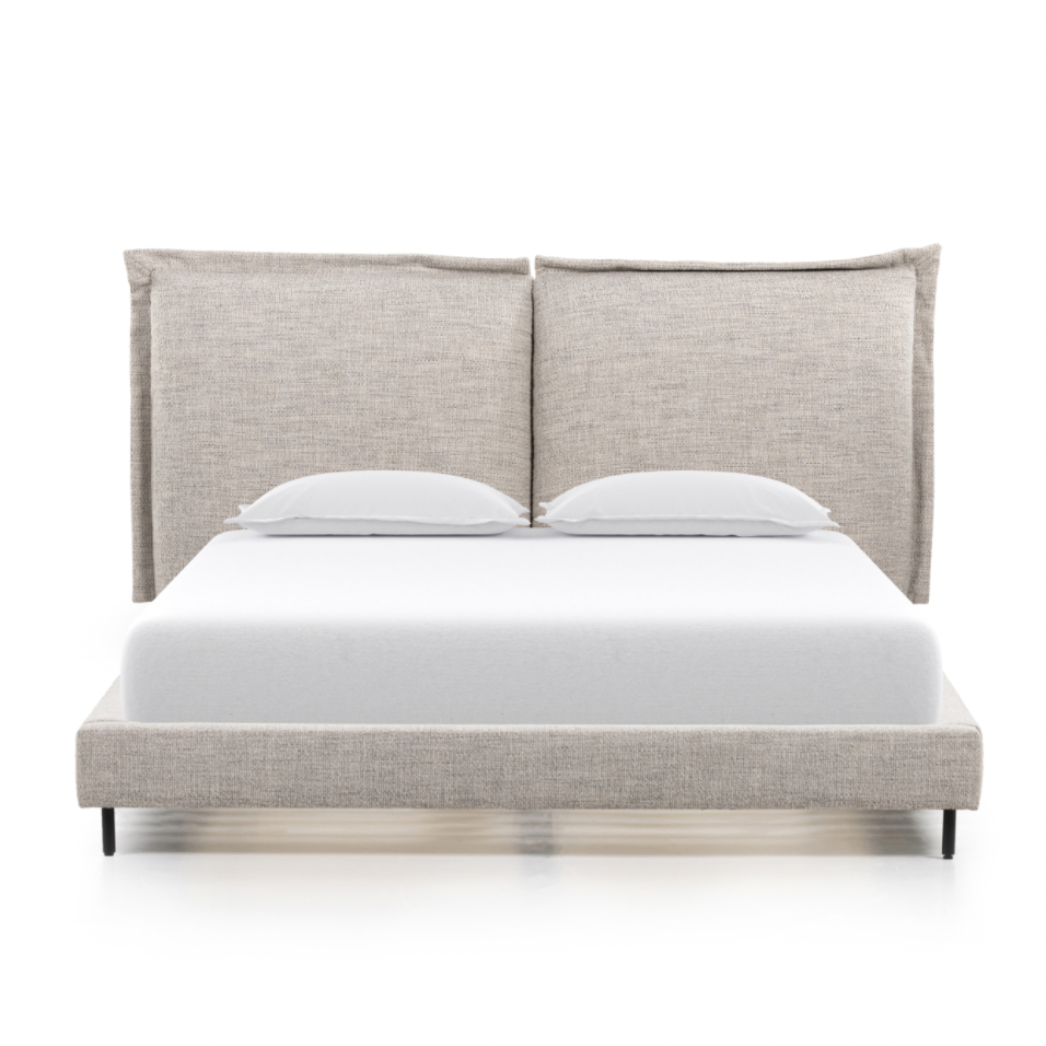 A Verellen essential, the Aimee Bed is a beautiful platform bed. Both comfy and durable, this comes standard with:  double needle stitch detail platform on glides available slipcovered not available with box spring Available in twin, full, queen, king, and California king mattresses.