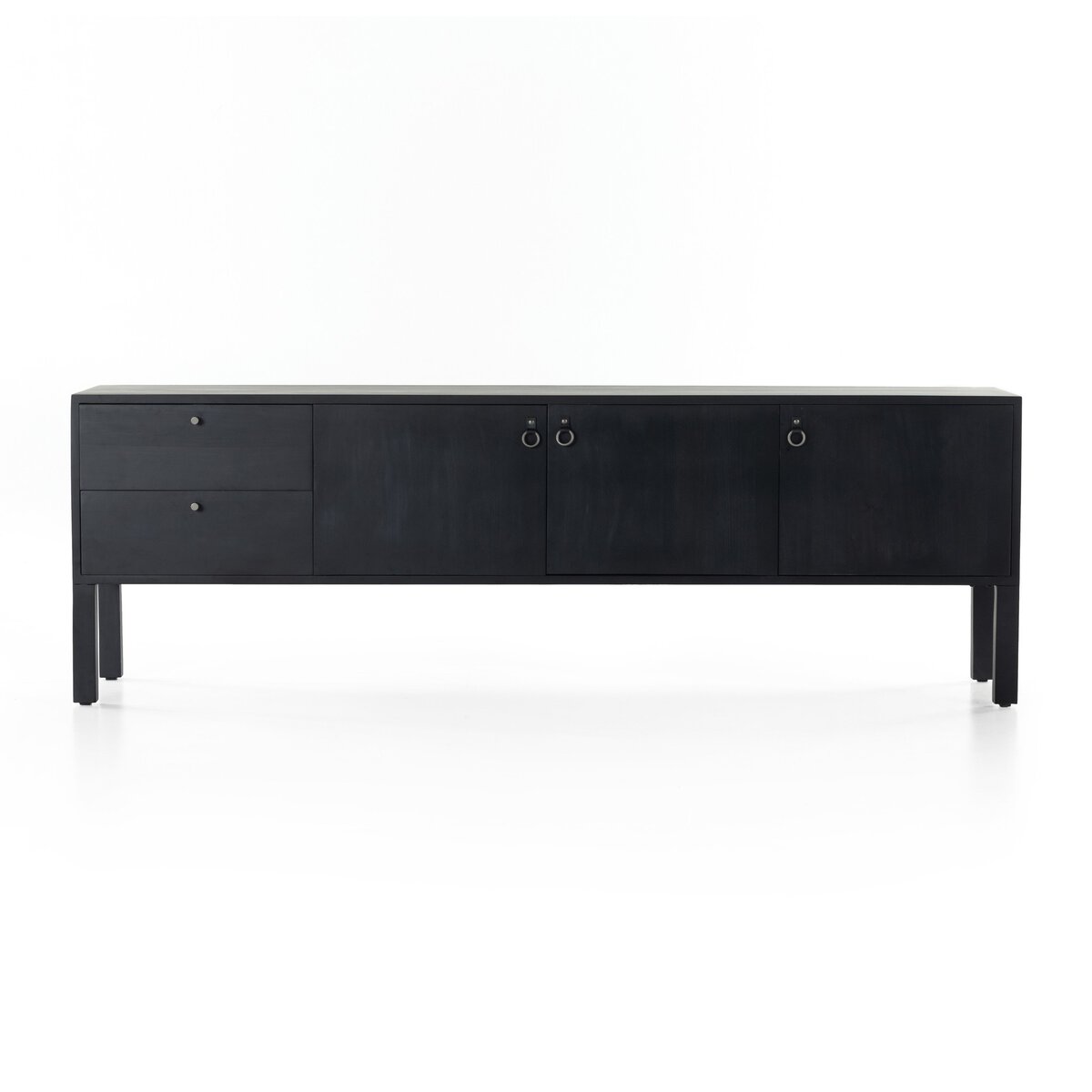 shop Isador Black Wash Poplar Media Console | shipping 07/15/2025 at Amethyst Home