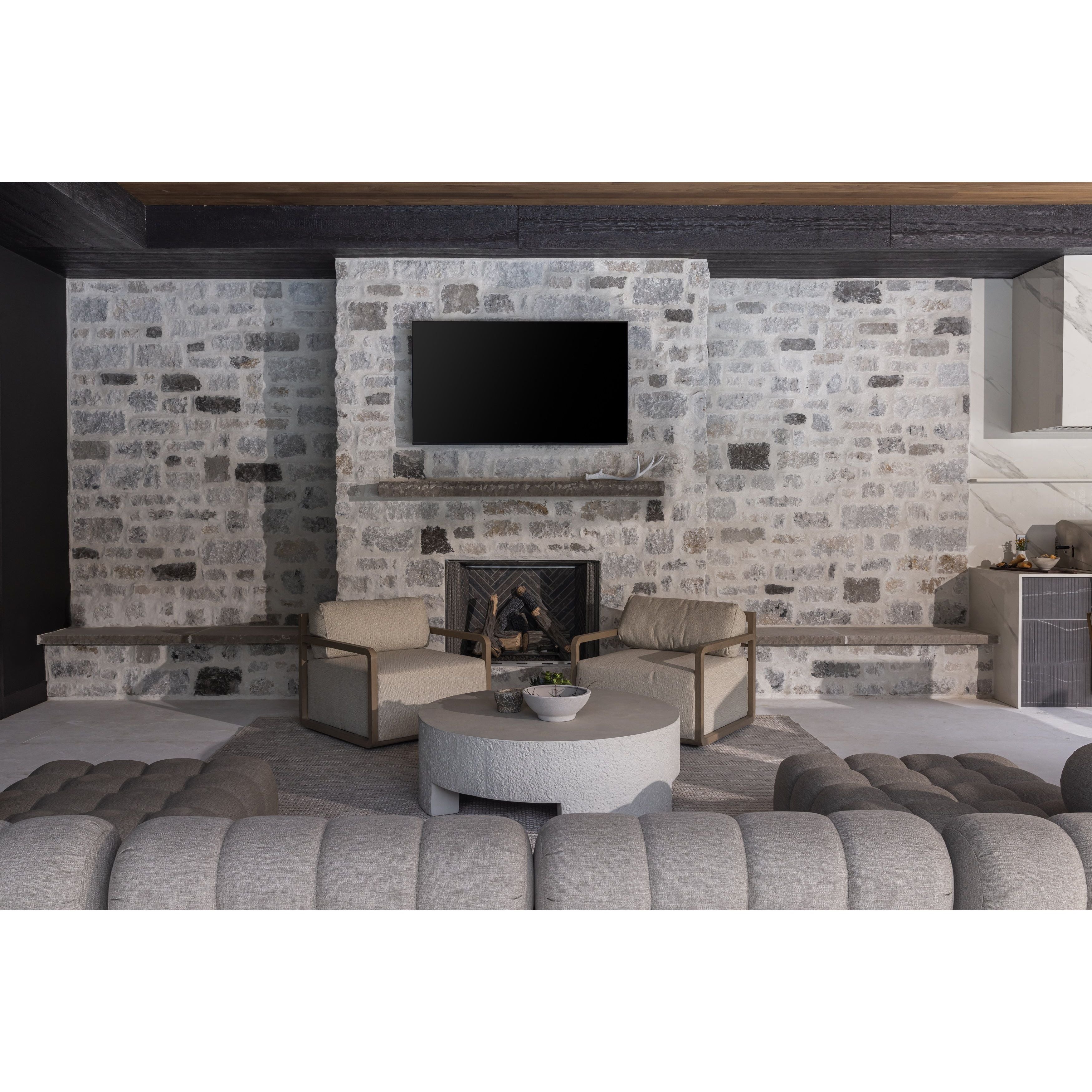 Featuring Otero Outdoor Round End Table by Four Hands at Amethyst Home. We love the textured, round shape of this Otero Outdoor Round End Table. We'd love to see this featured on your patio, poolside, or other space! Cover or store indoors during inclement weather and when not in use.