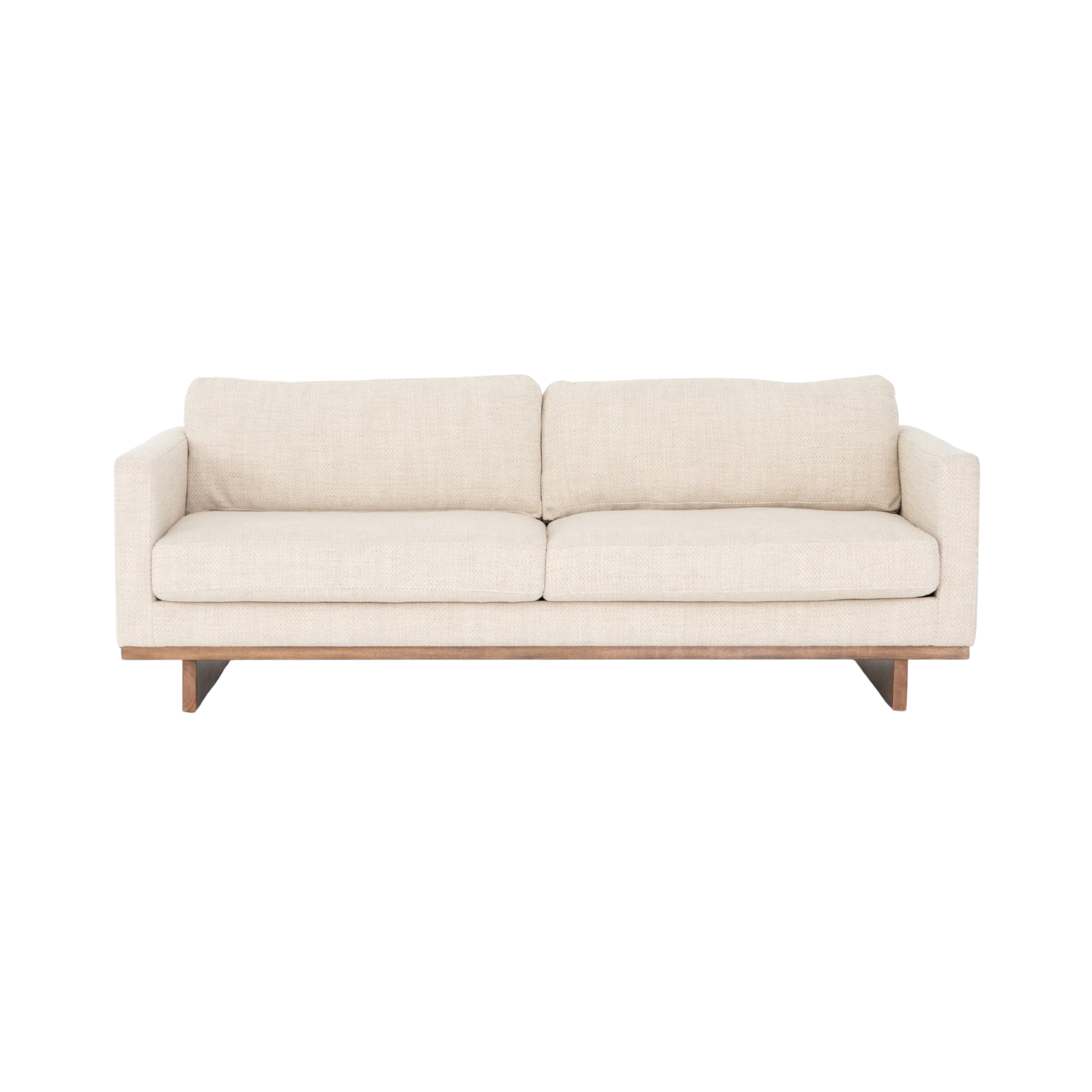 Featuring Everly Sofa - Irving Taupe by Four Hands at Amethyst Home. Classic goes contemporary with this Everly Sofa - Irving Taupe. A cocoa-finished parawood base supports low, deep seating of performance-grade upholstery in an invitingly neutral taupe, with track arms for a clean touch for any living room or lounge area.