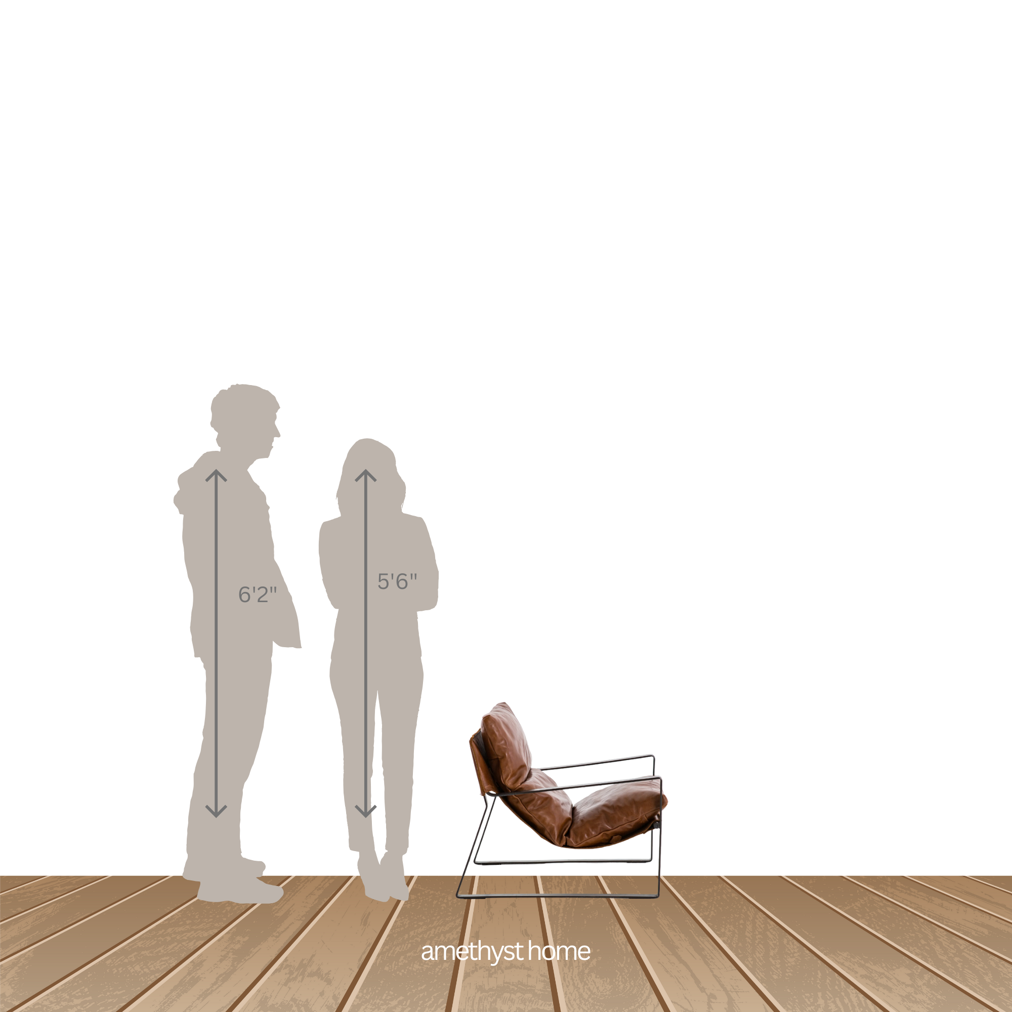 Super stylish, effortlessly cool - this Emmett Sling Chair in Umber Natural has light leather that sits low and curved for a fresh take on a throwback form. Slim, gunmetal-finished iron framing elevates the space for any living room or lounge area.