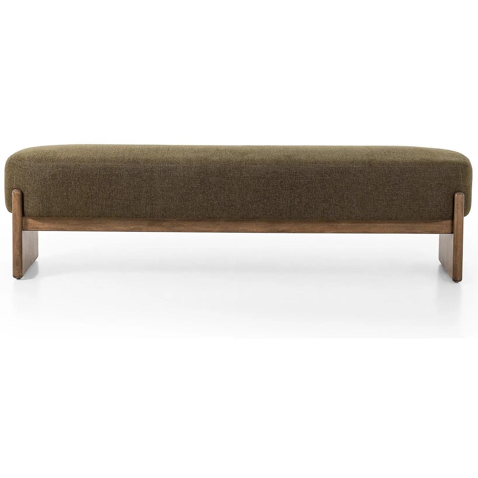 Featuring Kirby Sutton Olive Accent Bench by Four Hands at Amethyst Home. Style this modern accent bench just about anywhere. A cradle base of wire-brushed parawood supports heavily textured upholstered seating.Overall Dimensions: 75.50"w x 20.50"d x 20.50"hWeight : 67.24 lbsMaterials: 100% Polyester, Solid Parawood, Poplar Plywood. Amethyst Home provides interior design, new home construction design consulting, vintage area rugs, and lighting in the Tampa metro area.