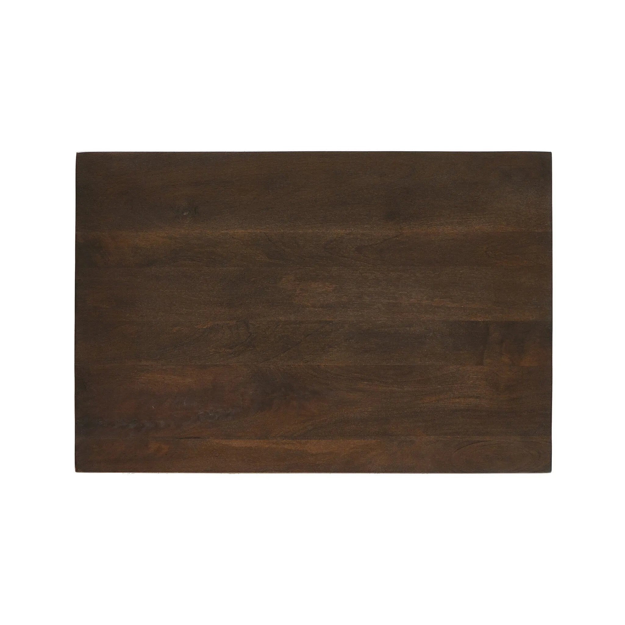 Inspired by French antique design, this dresser stands on round tapered legs with a prominent overhang top. Made of mango wood with cast iron key ring pulls, two drawers make it a versatile choice as a dresser or nightstand.