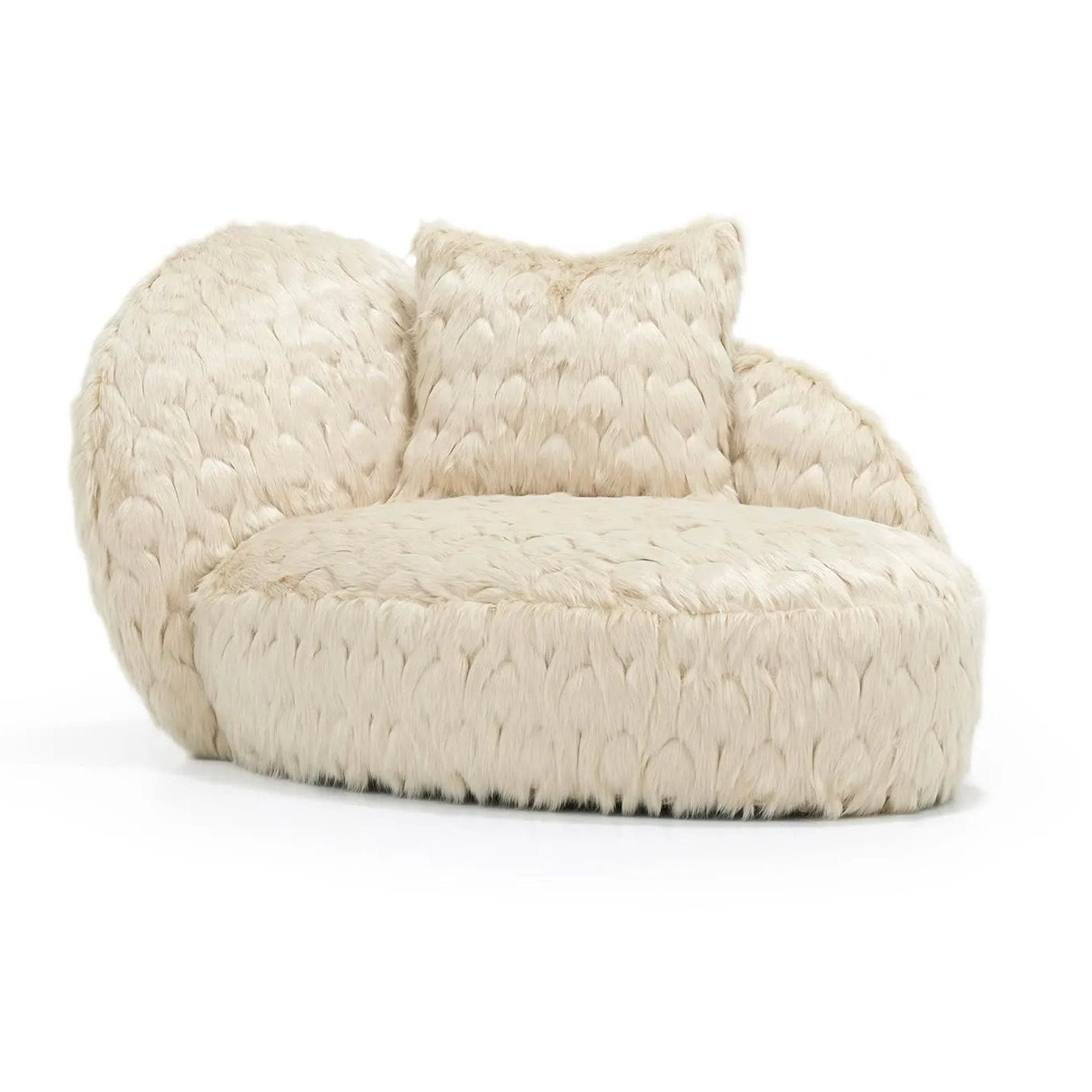 The Chloe One Arm Chaise carries the same playful curves and slightly angled arm as the sofa, offering a unique silhouette. With its plush, tight seat and back, this chaise combines bold, modern design with luxurious comfort, making it a perfect statement piece for lounging in style.
