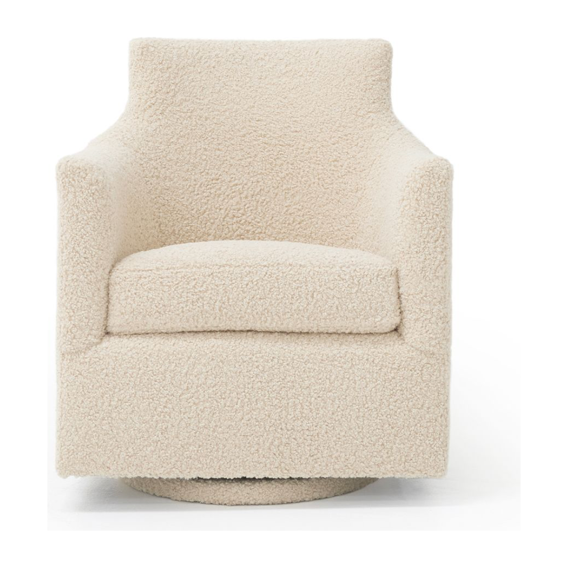 The dreamiest seat -- fully upholstered in a linen toned boucle (even the base!). Swivel and glide in Verellen style.