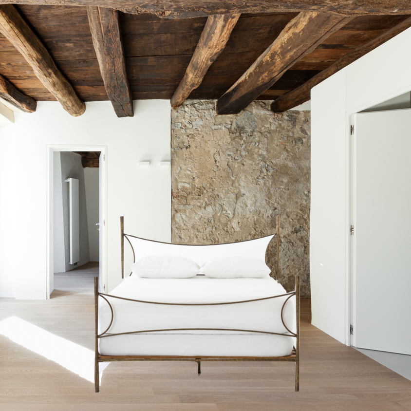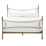 Les courbes séduisantes adoucissent les matériaux durs pour un drame marqué avec ce lit Westwood. Le fer mince et martelé est fini en laiton antique pour une profondeur qui défie l'air féminin de ce cadre. Sommier tapissier à profil bas recommandé.