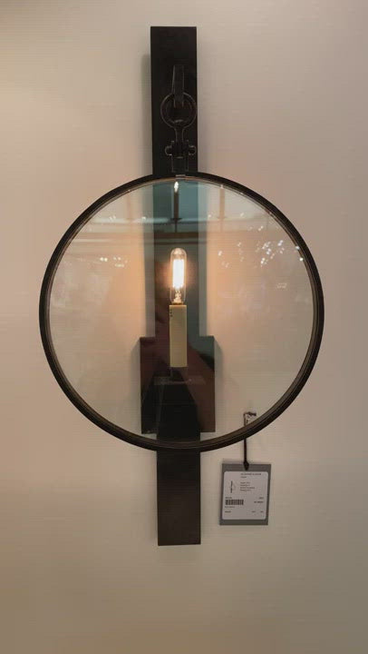 Featuring Alice Aged Iron Sconce by Visual Comfort at Amethyst Home. The Alice Aged Iron Sconce by Visual Comfort has a unique circular covering that showcases the single candle placed in the middle. Finished in Aged Iron, this is a gorgeous sconce to add in your living room, bedroom,  or other area needing an attractive source of light.