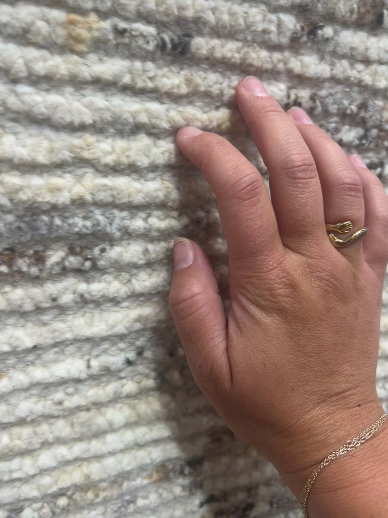 Amber Lewis x Loloi Briyana Natural / Granite Rug combines the incredible ribbed texture of Moroccan rugs with clean, contemporary design, thanks to Lewis’s careful eye for details. Each rug features a different pattern with elegant and uncluttered linework, while its border adds a subtle framing in the same color of the base material. Hand-knotted of wool and cotton in India, this collection is also GoodWeave certified, ensuring our commitment to ethical production and the support of weavers' communities.