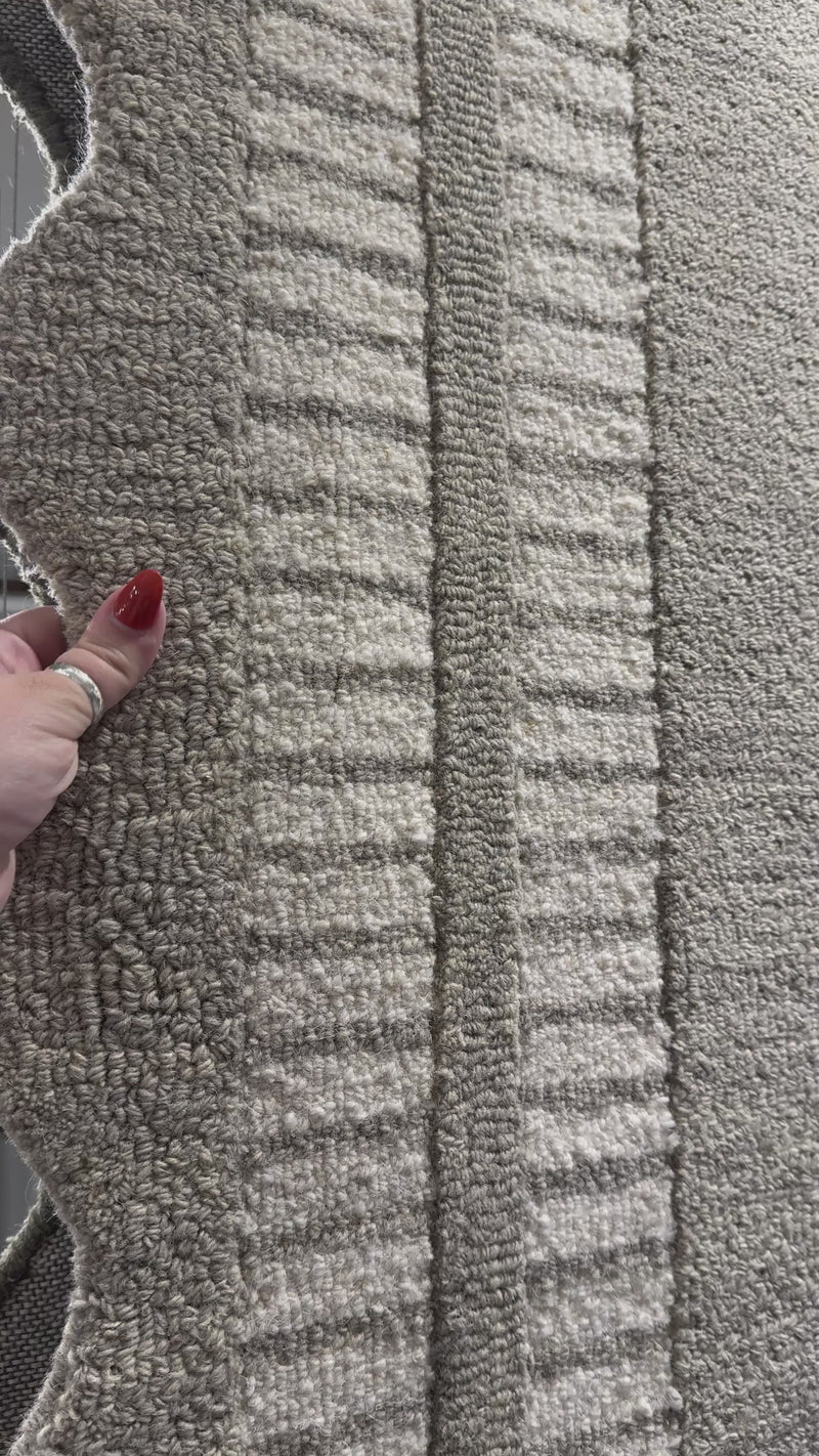 The Scottie Collection from Chris Loves Julia x Loloi is a hand-tufted wool area rug with a playful scalloped edge and lower-pile, striped border for a touch of structure. The rugs overall pile is thick and plush, available in easygoing earth tones and neutral colorways. This collection is hand-tufted of 100% wool in India and Goodweave-certified, ensuring our commitment to ethical production and the support of weavers communities. Some shedding is expected and a natural characteristic of wool rugs; we recommend vacuuming frequently without a beater bar.