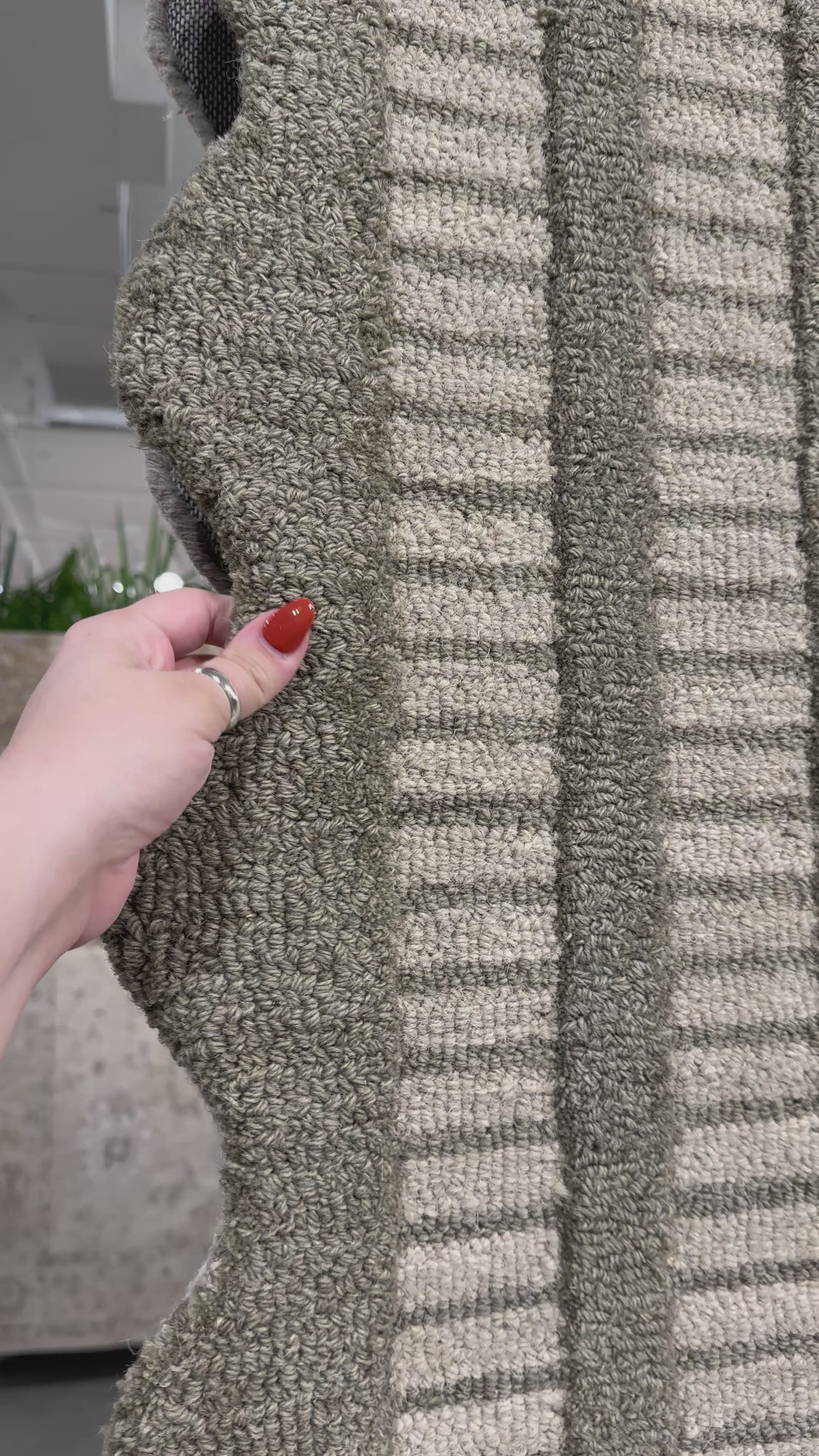 The Scottie Collection from Chris Loves Julia x Loloi is a hand-tufted wool area rug with a playful scalloped edge and lower-pile, striped border for a touch of structure. The rugs overall pile is thick and plush, available in easygoing earth tones and neutral colorways. This collection is hand-tufted of 100% wool in India and Goodweave-certified, ensuring our commitment to ethical production and the support of weavers communities. Some shedding is expected and a natural characteristic of wool rugs; we recommend vacuuming frequently without a beater bar.