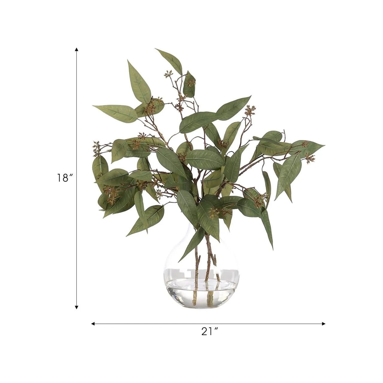 SKU: GN1163 Item Name: Eucalyptus, Faux Watergarden, 18" Color: Green Container Description: Glass Bubble