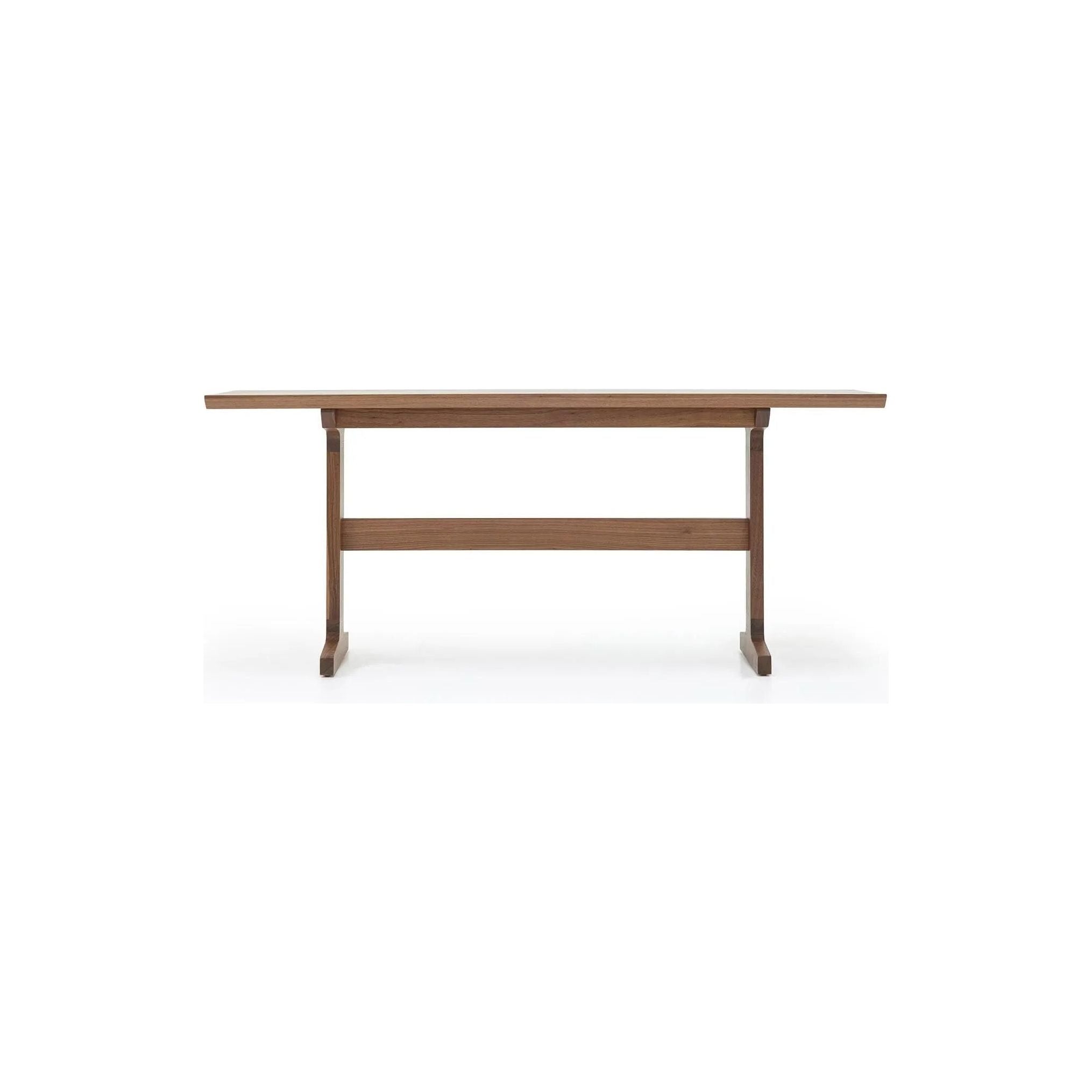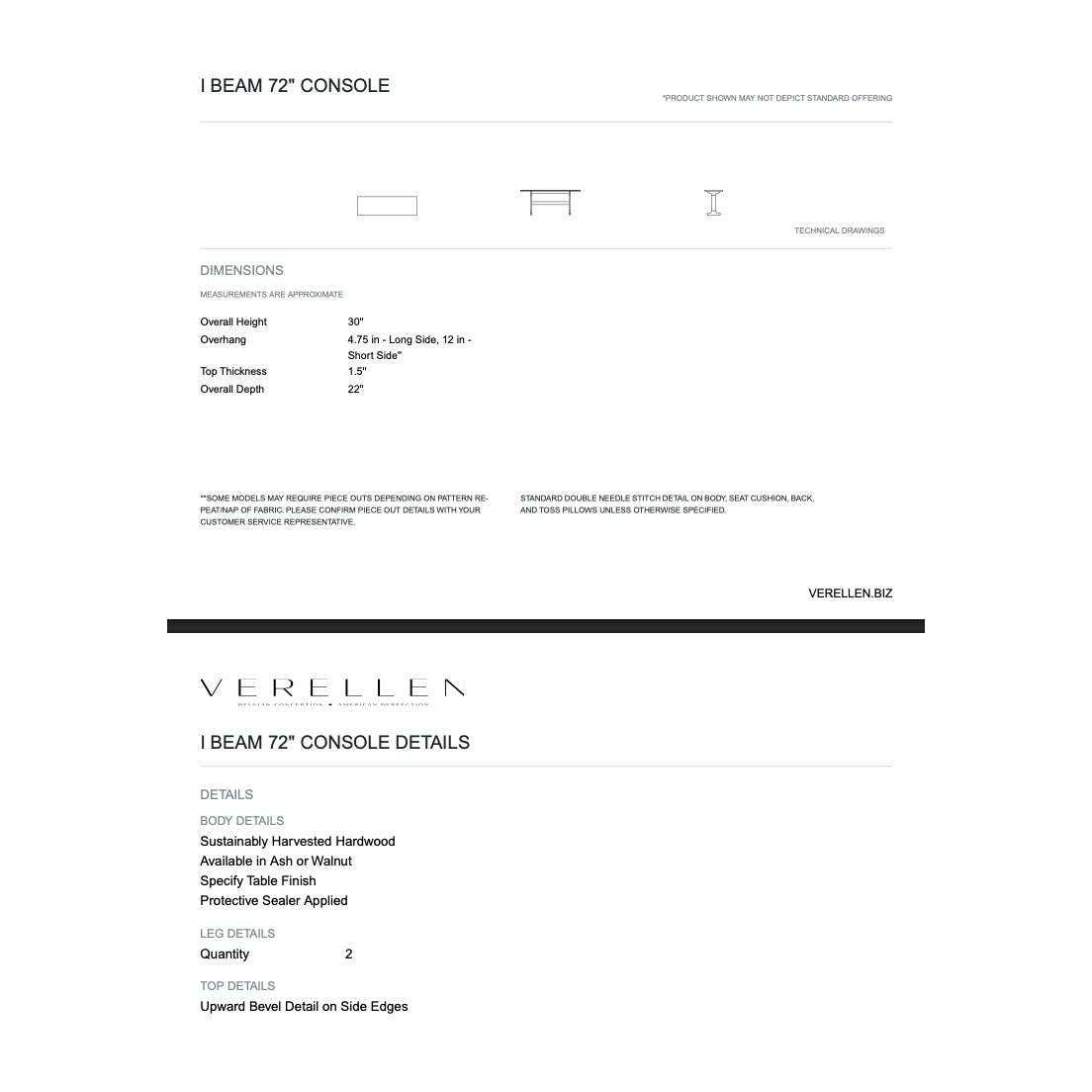A Verellen classic: the I Beam Console is our take on a classic trestle table. It's handmade from sustainably harvested hardwood featuring a rectangular table top with upward bevel detail and trestle style legs.
