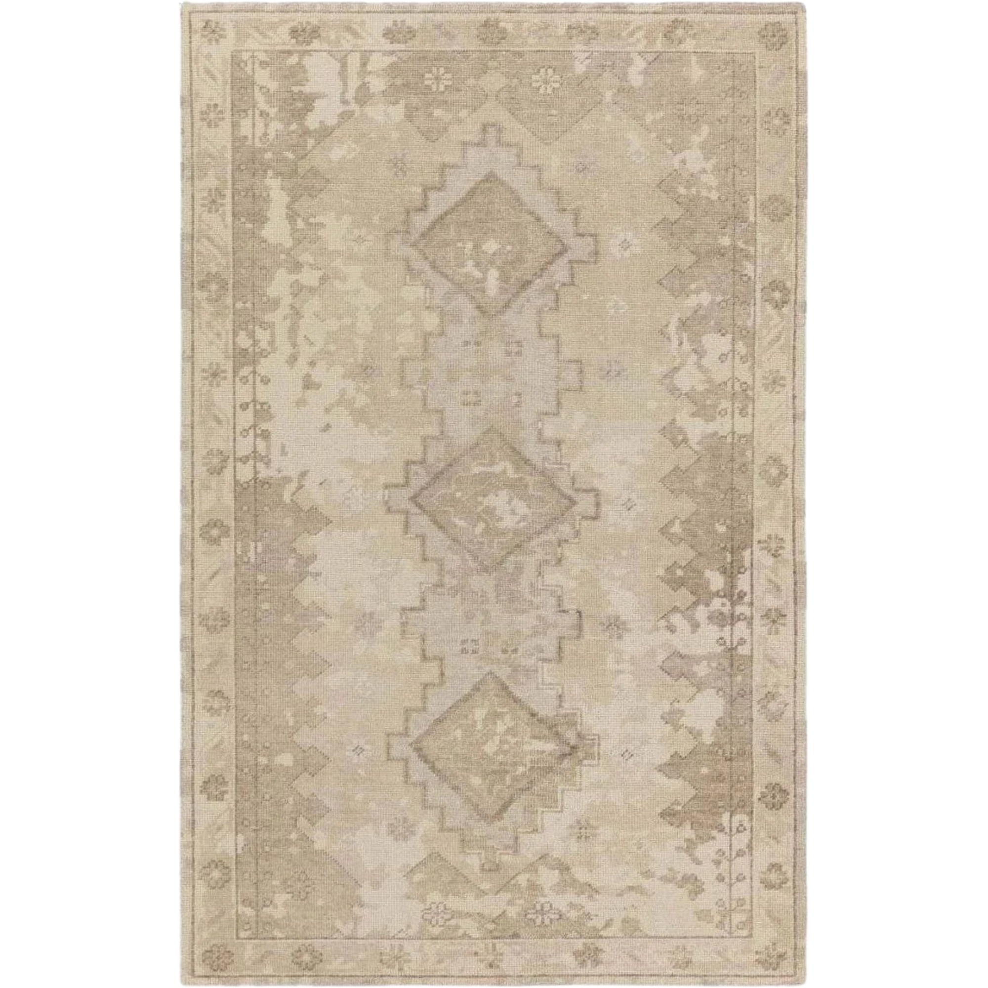 The artisan-made Kai Pathos Rug effortlessly blends the contemporary influence of color with traditionally timeless looks. Exceptionally made and artfully designed, the hand-knotted Pathos area rug infuses homes with vintage allure and an on-trend colorway. Abrashed taupe, cream, gray, and tan tones add a chic femme look to the geometric and floral details of this durable wool rug.