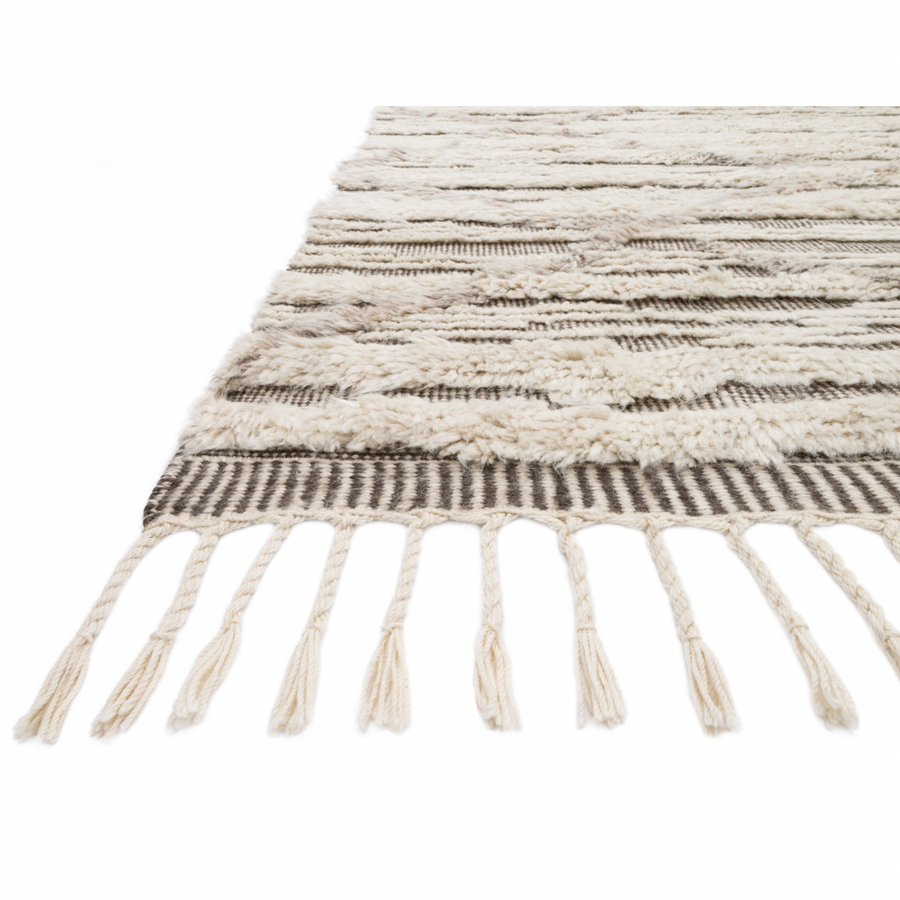 Featuring Khalid Ivory/Taupe Hand-Knotted Rug by Loloi at Amethyst Home. A nod to timeless Moroccan style, the Khalid Collection is hand-knotted in India by skilled artisans. The soft pile features 100% natural, undyed wool, lending slight variations in tones that make each piece it's own. Plus, each rug is finished with a thoughtfully designed fringe.