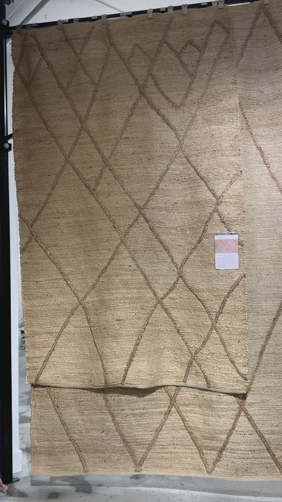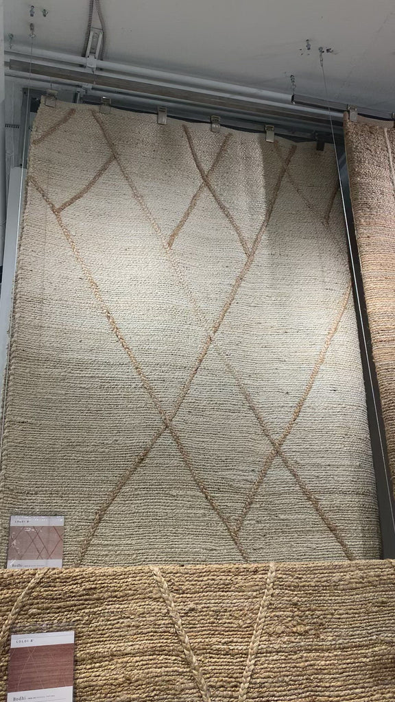 A tonal approach to Moroccan-inspired rugs, the Bodhi Ivory / Natural rug from Loloi is hand-woven of 100% jute by skilled artisans. This rug features linear and braided details, creating natural variations that make a subtle yet striking statement.