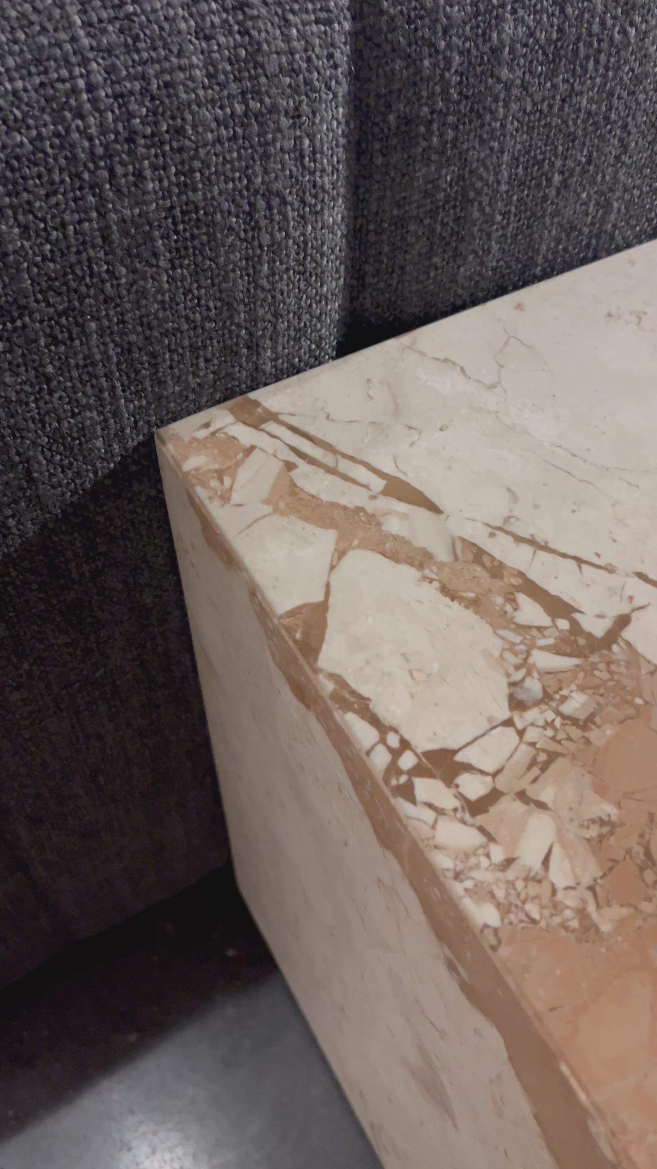 Taupe marble shapes a cubed, plinth-style end table that can be styled just about anywhere.