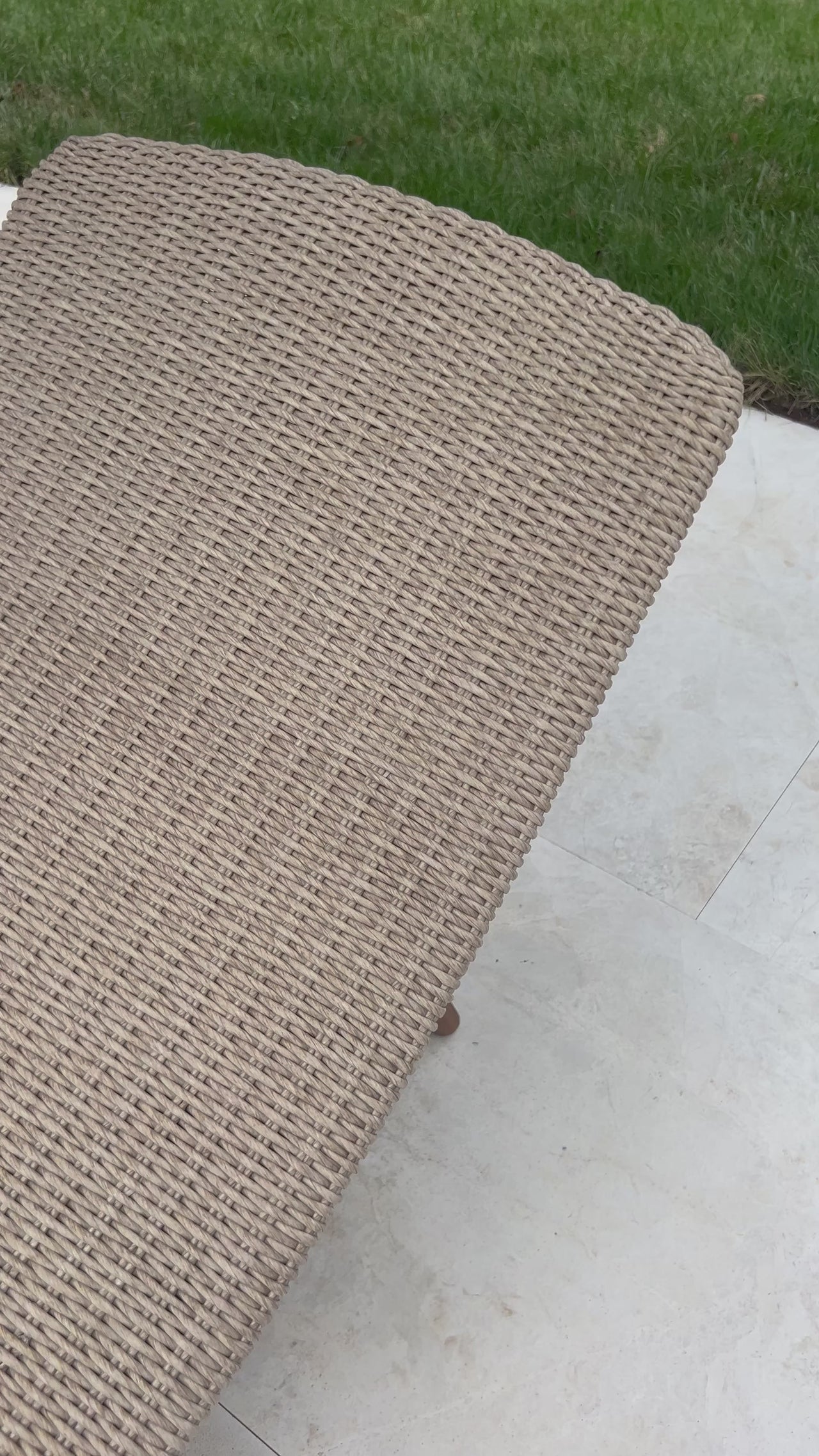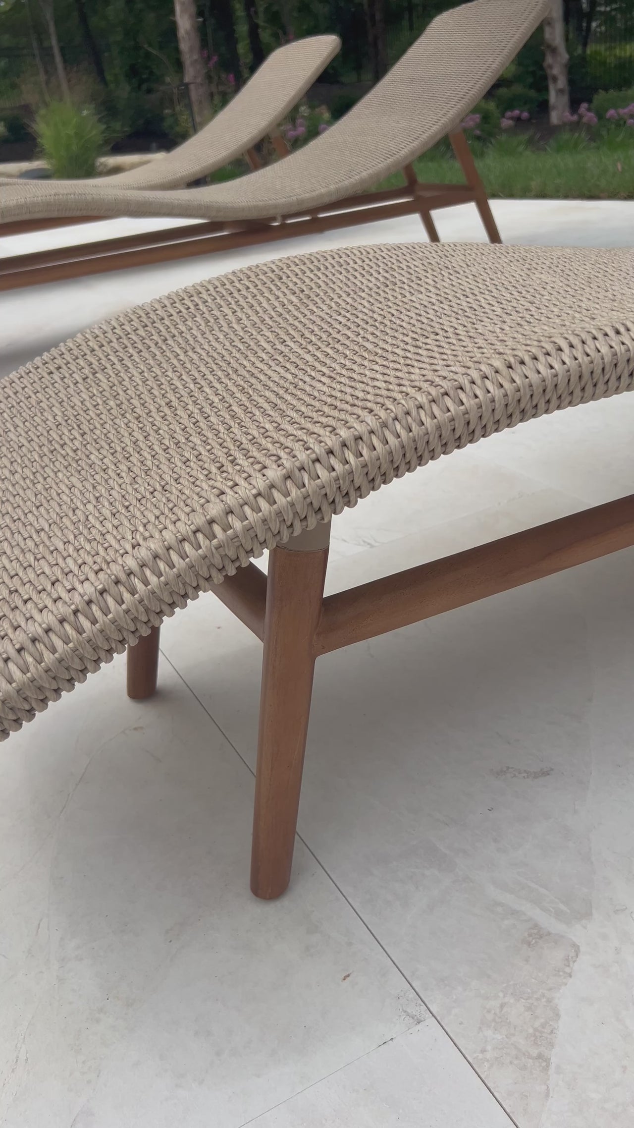 Strike a pose. Based off a vintage shape, all-weather wicker is subtly curved and set atop a minimal frame made of solid teak. A stylish statement piece and seating option for both indoors and out. Cover or store inside during inclement weather and when not in use.