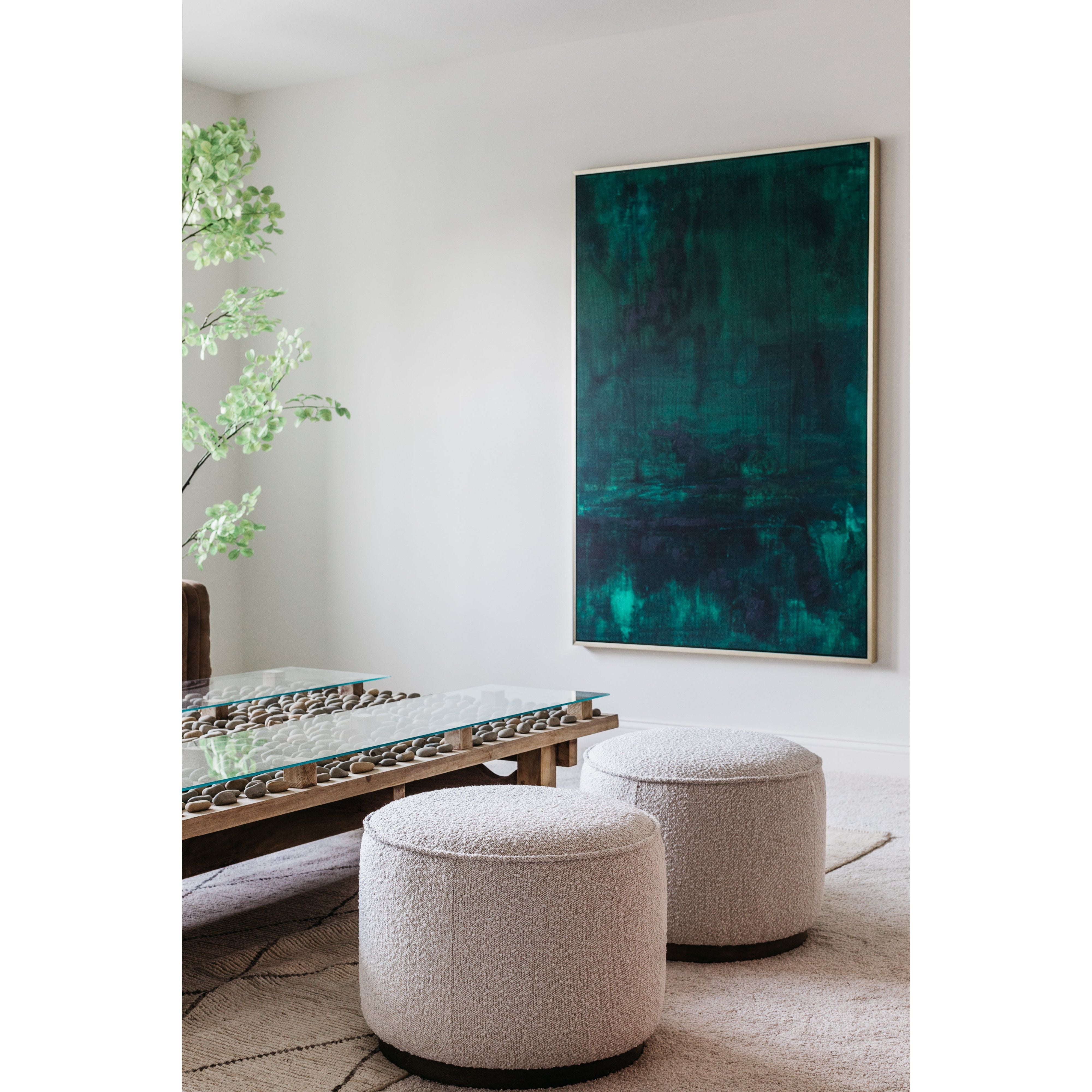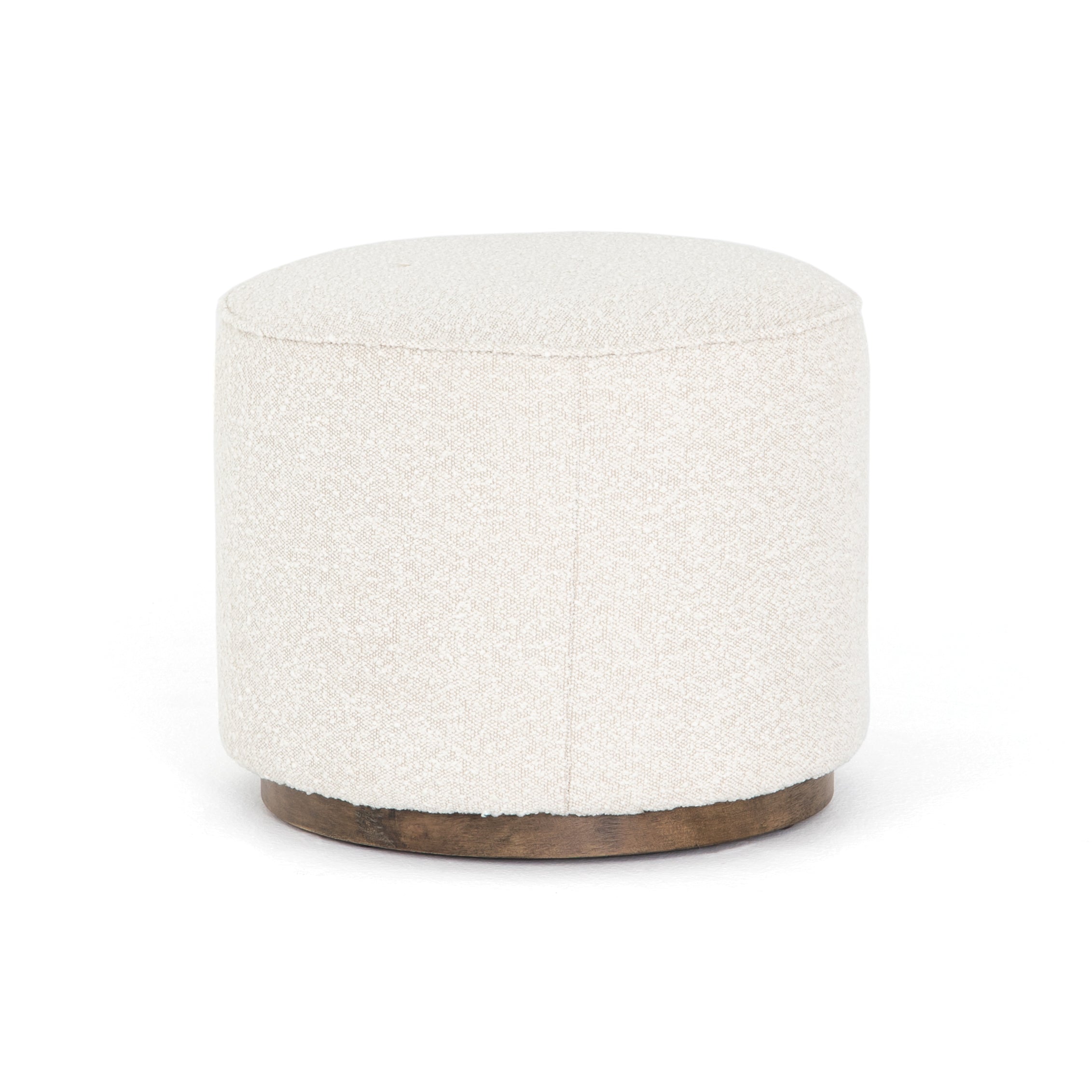 This round ottoman of textural cream boucle can be placed just about anywhere, bringing with it a hip retro vibe.
