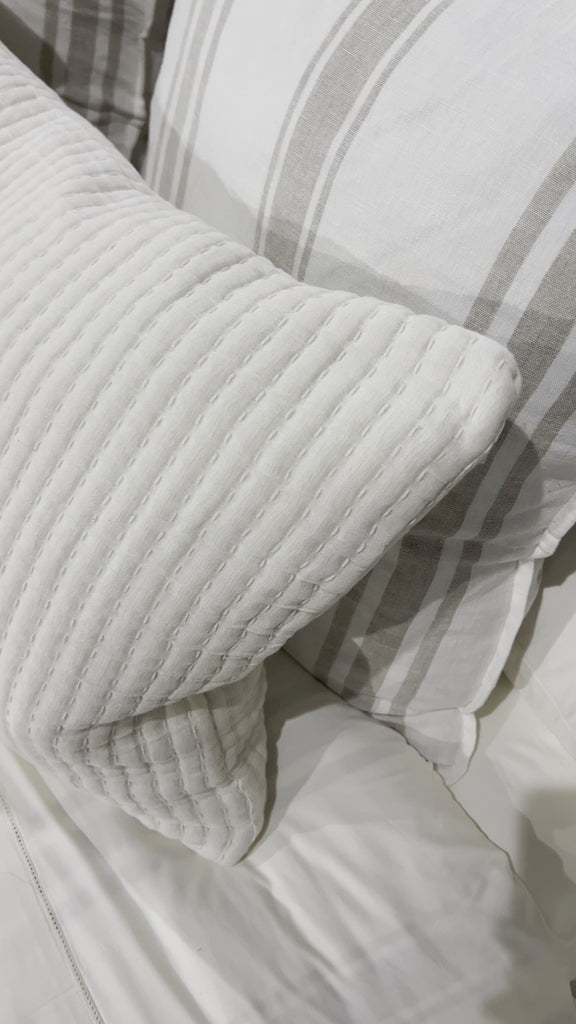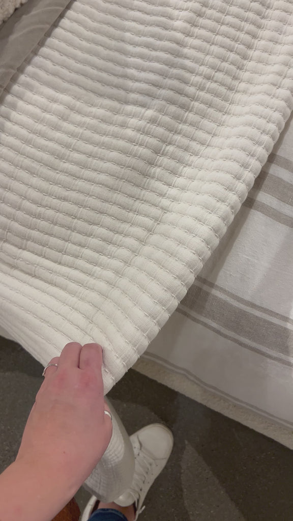Add textural interest to your bed with the Vancouver Coverlet collection. Made of a lightweight stonewashed cotton gauze with an interwoven ivory stripe, it is the perfect addition to your bed to create a relaxing space.